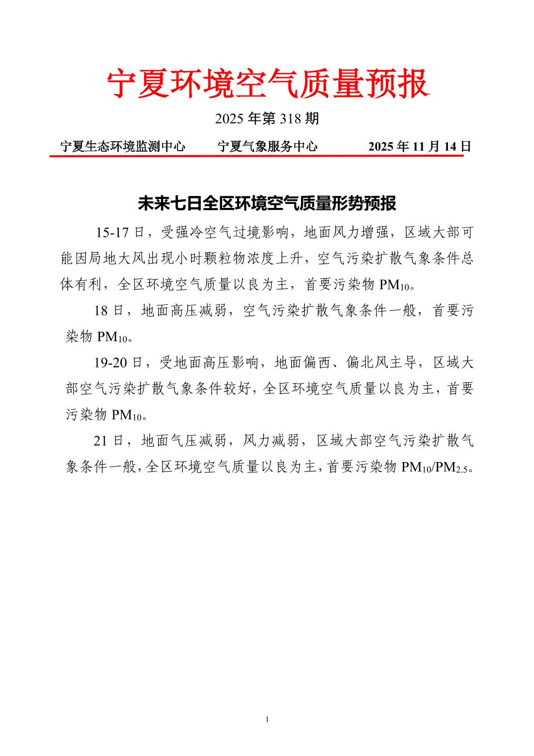 2025年11月14日宁夏环境空气质量预报信息