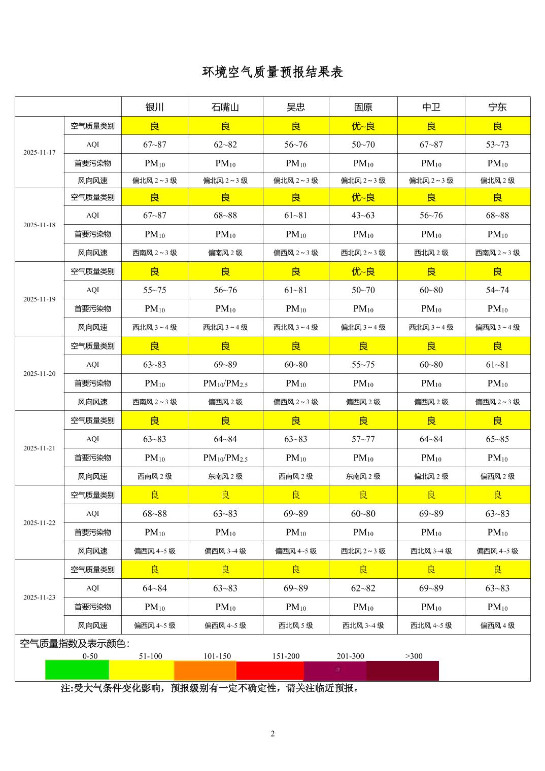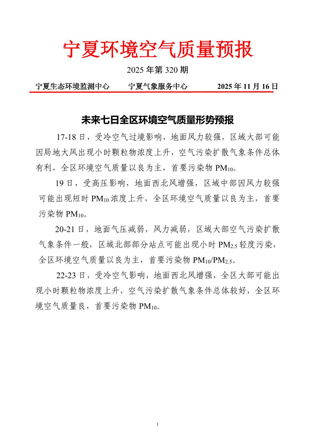 2025年11月16日宁夏环境空气质量预报信息