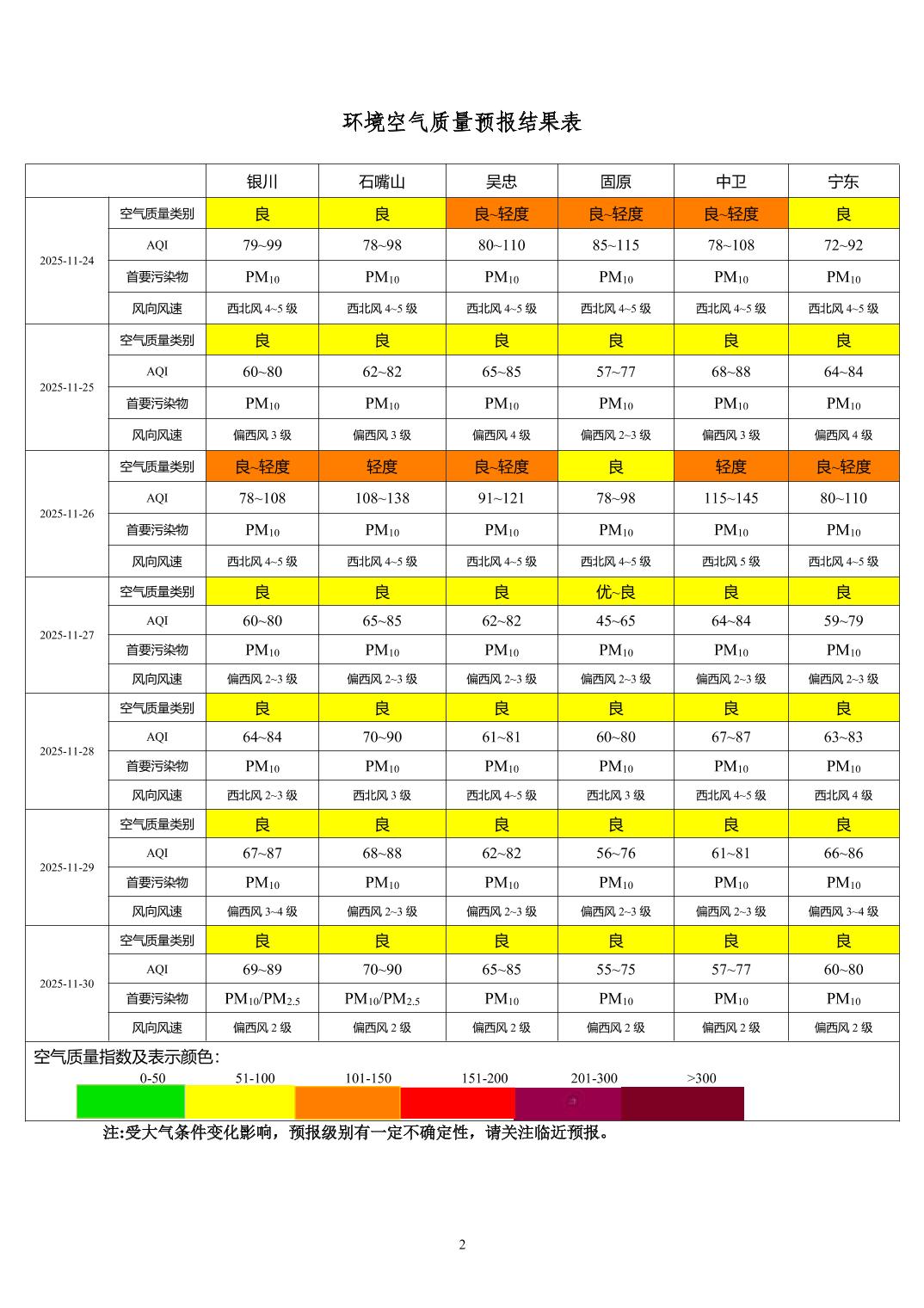 > 环境空气质量预报