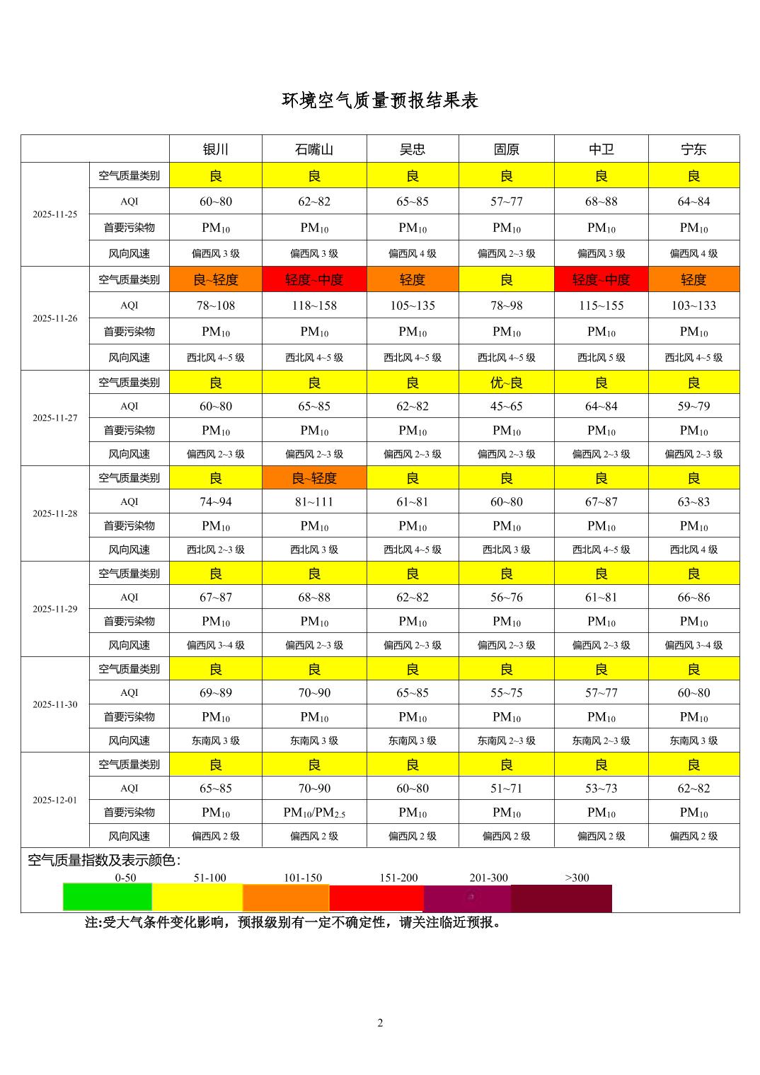 > 环境空气质量预报