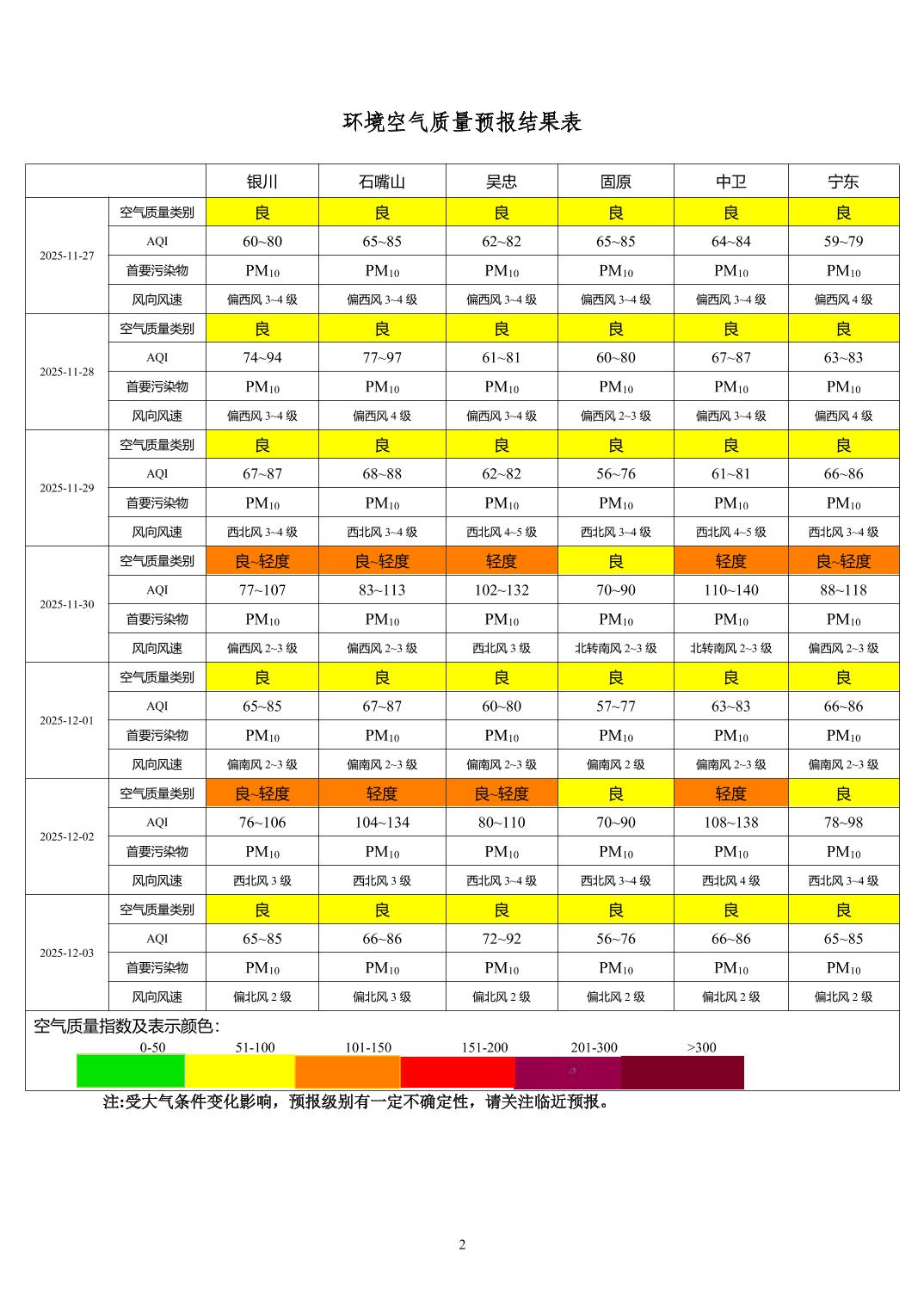 > 环境空气质量预报