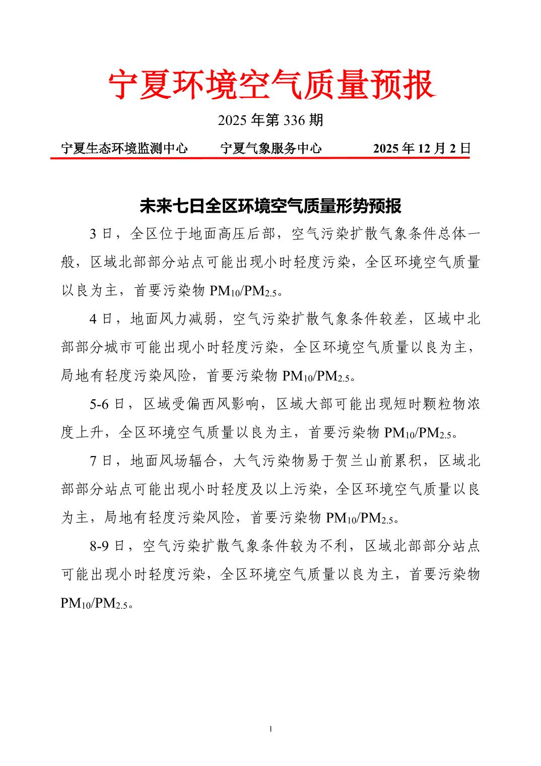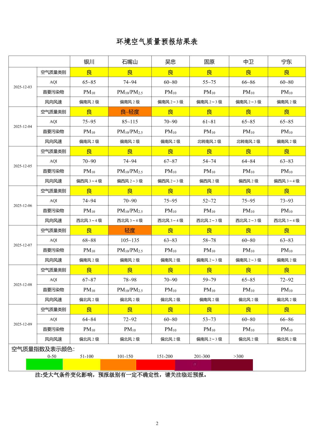 2025年12月2日宁夏环境空气质量预报信息