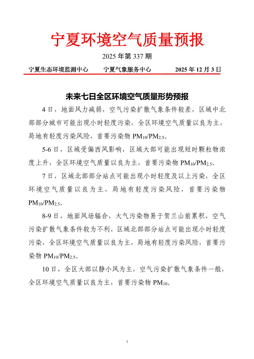 2025年12月3日宁夏环境空气质量预报信息