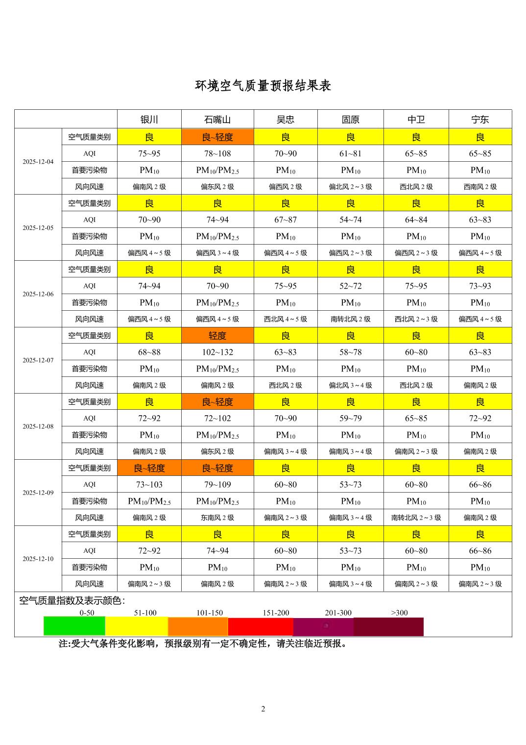 > 环境空气质量预报
