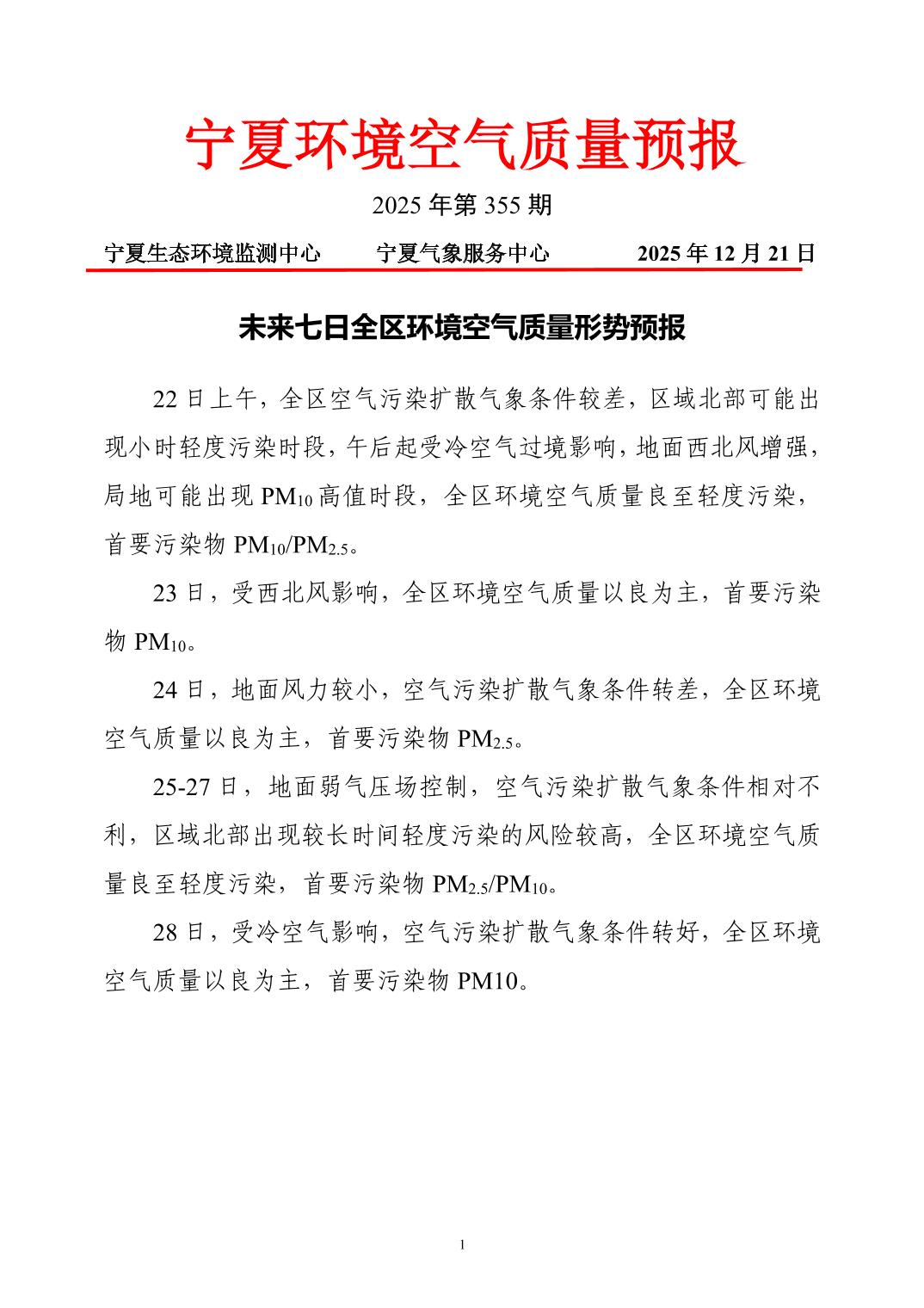 2025年12月21日宁夏环境空气质量预报信息