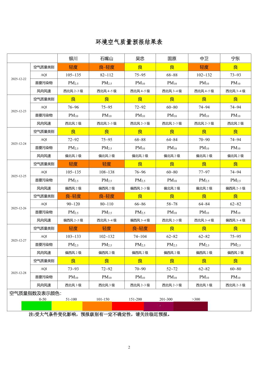 > 环境空气质量预报