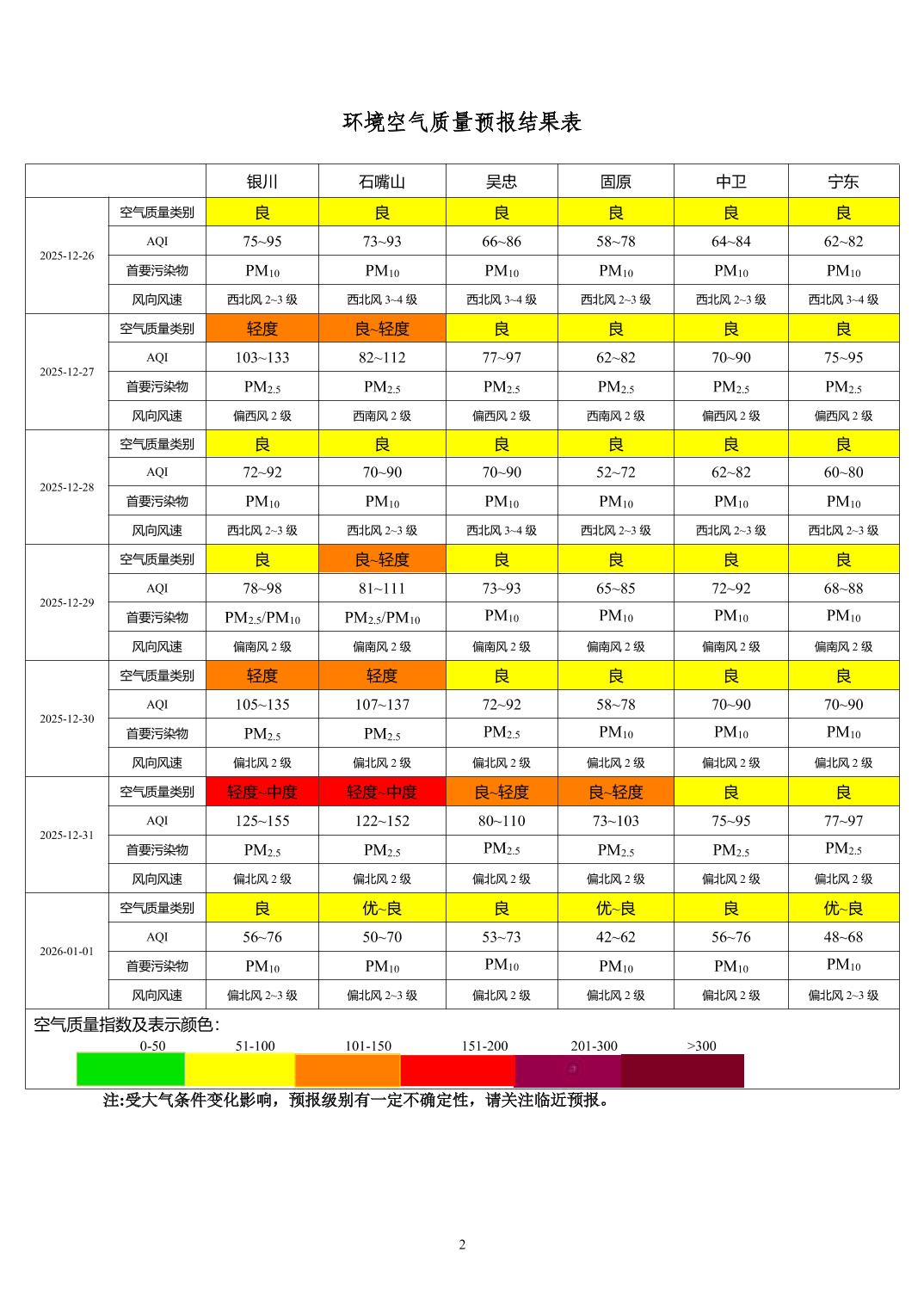 > 环境空气质量预报