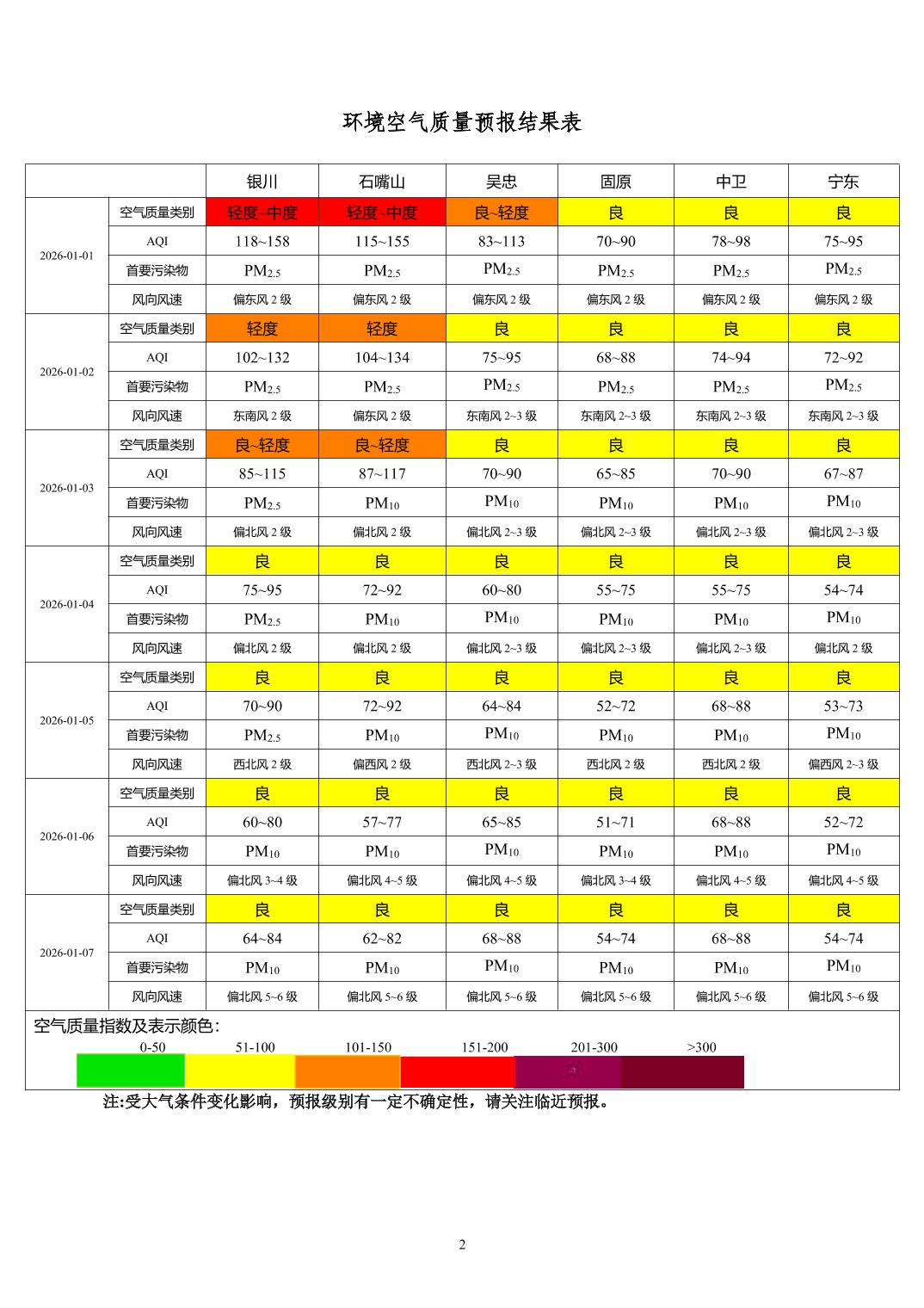 > 环境空气质量预报