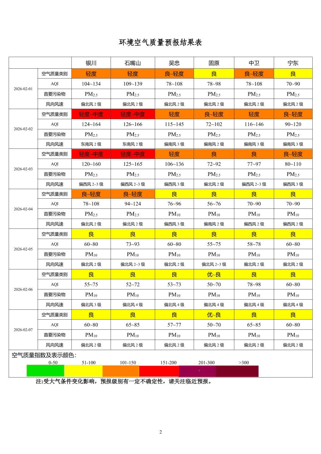 > 环境空气质量预报