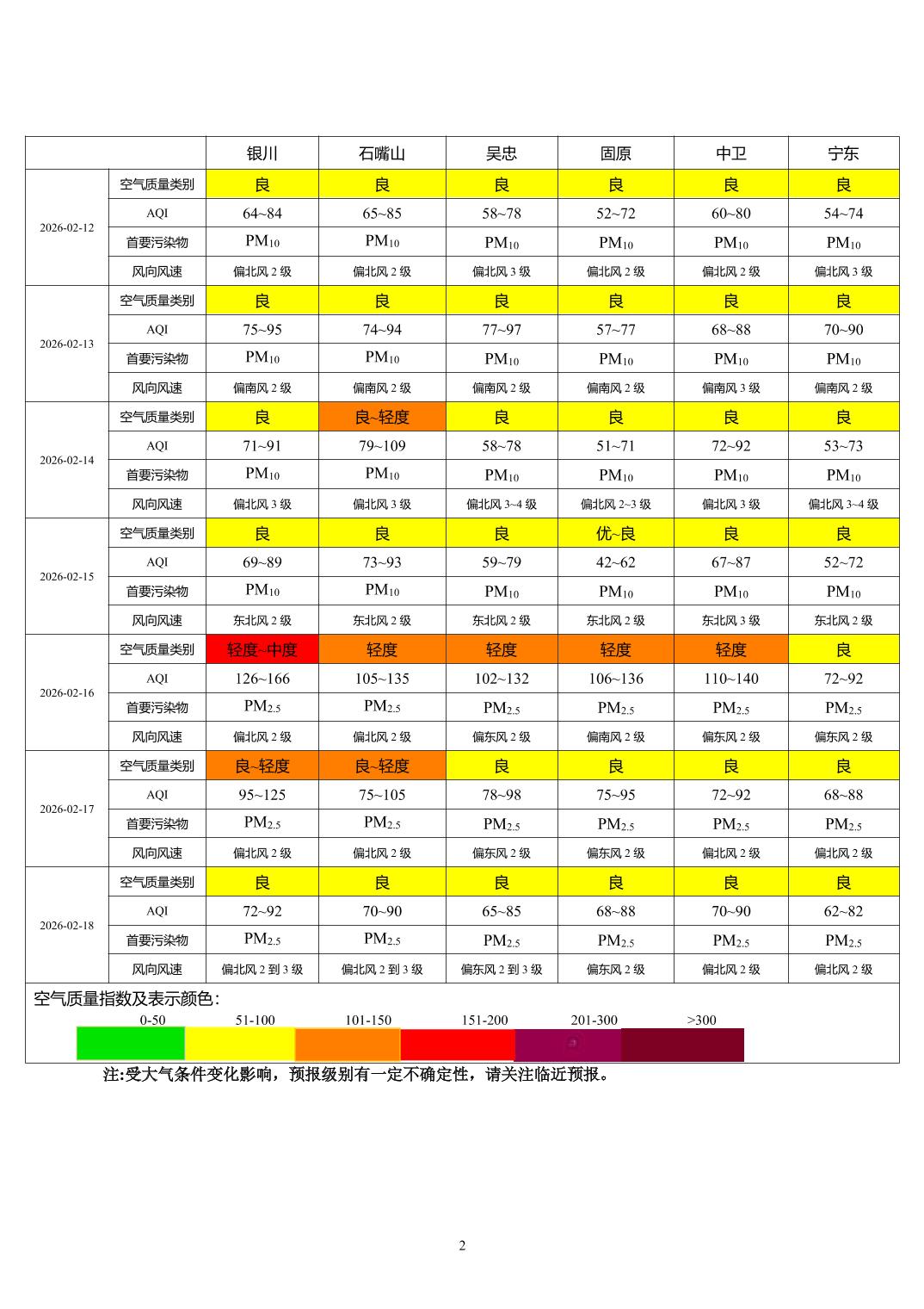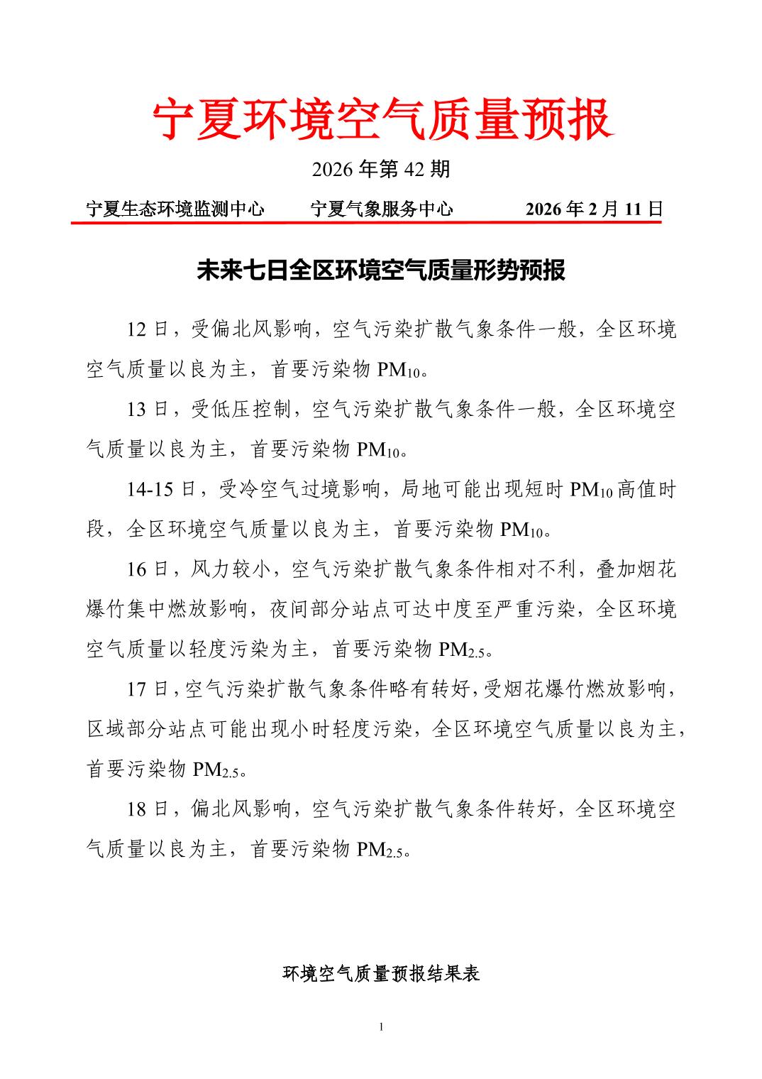 2026年2月11日宁夏环境空气质量预报信息