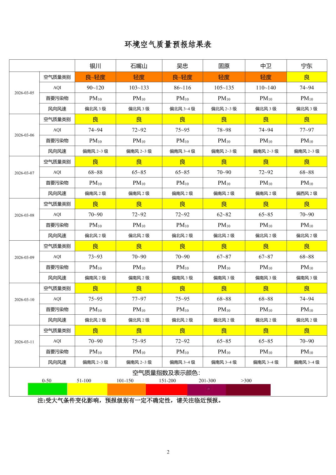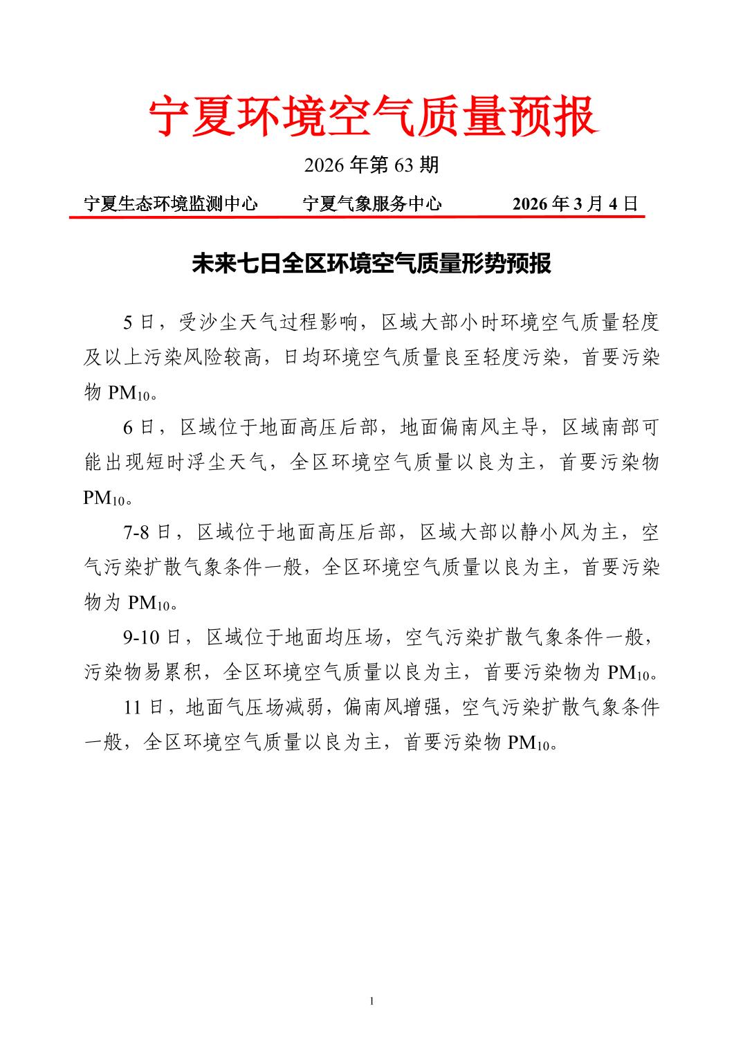 2026年3月4日宁夏环境空气质量预报信息