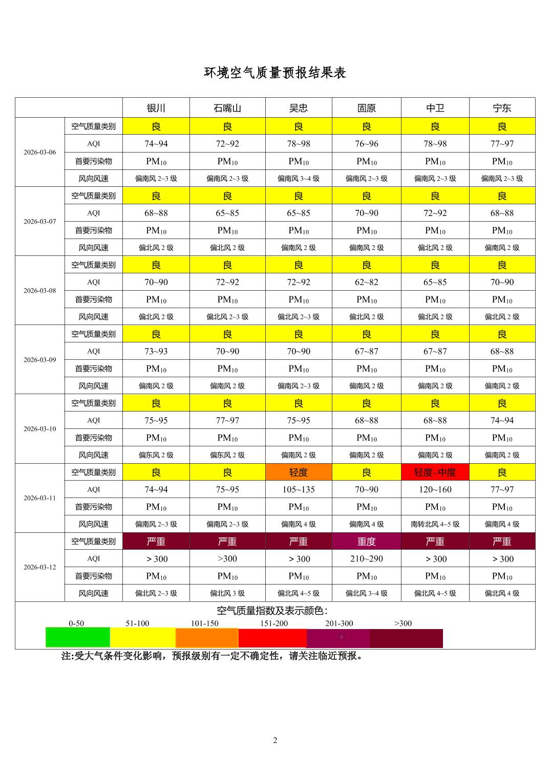 > 环境空气质量预报