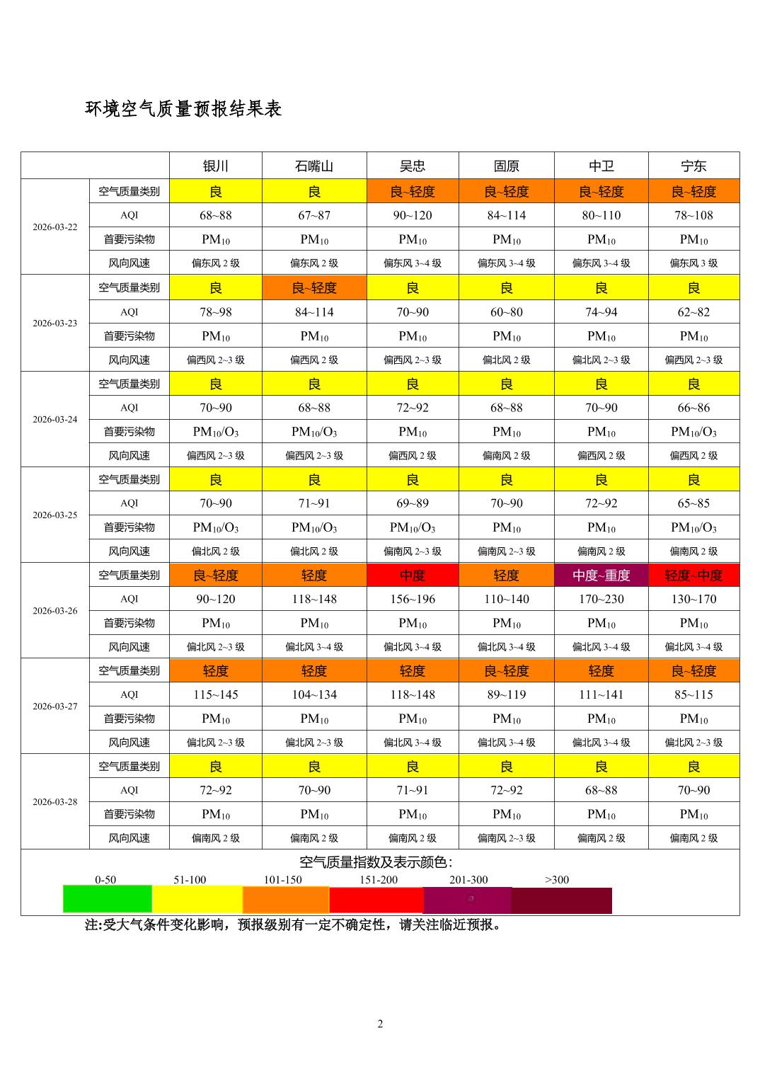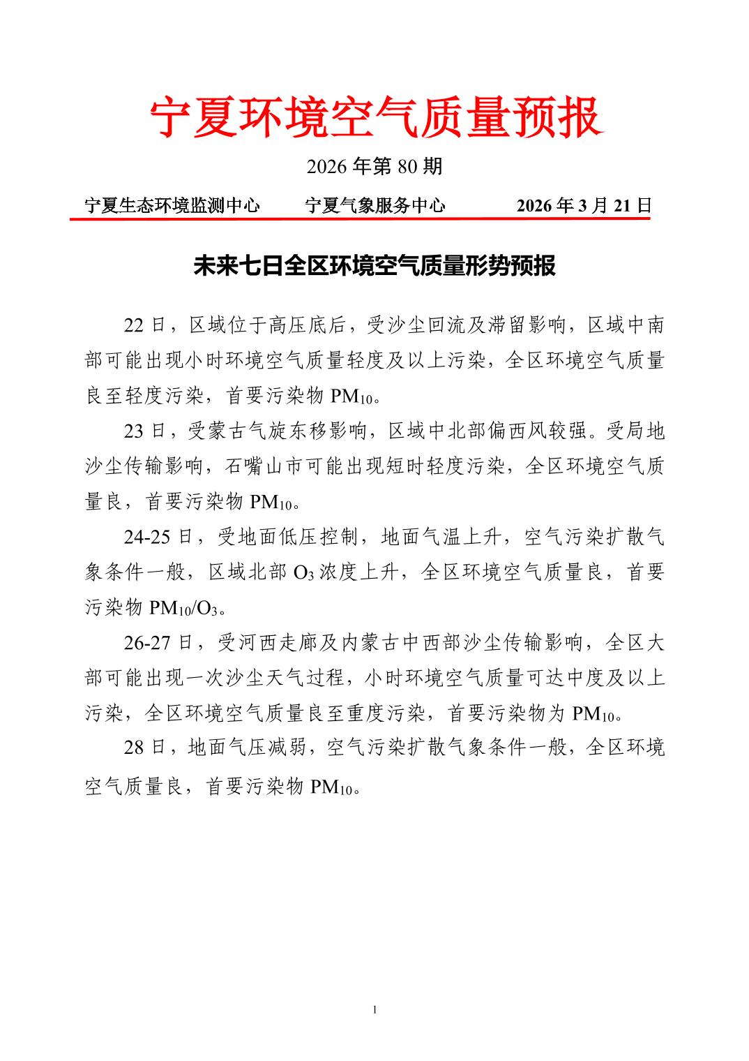 2026年3月21日宁夏环境空气质量预报信息