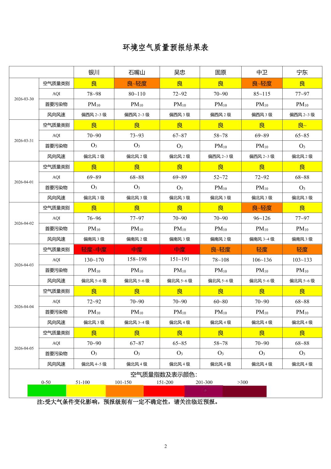 > 环境空气质量预报