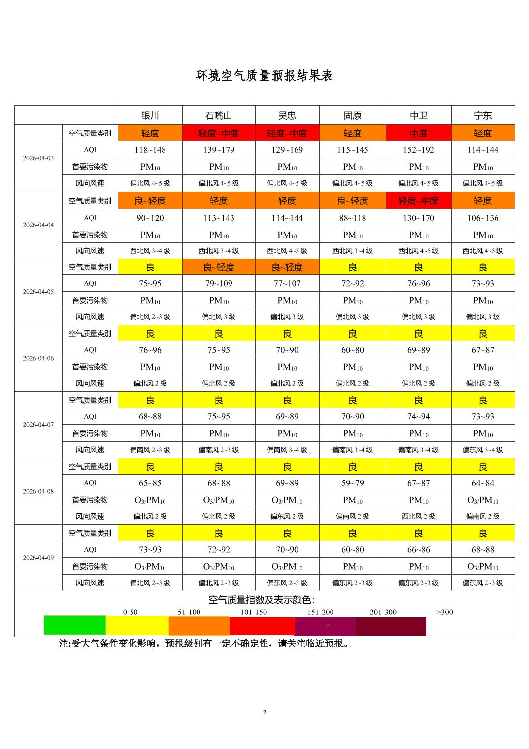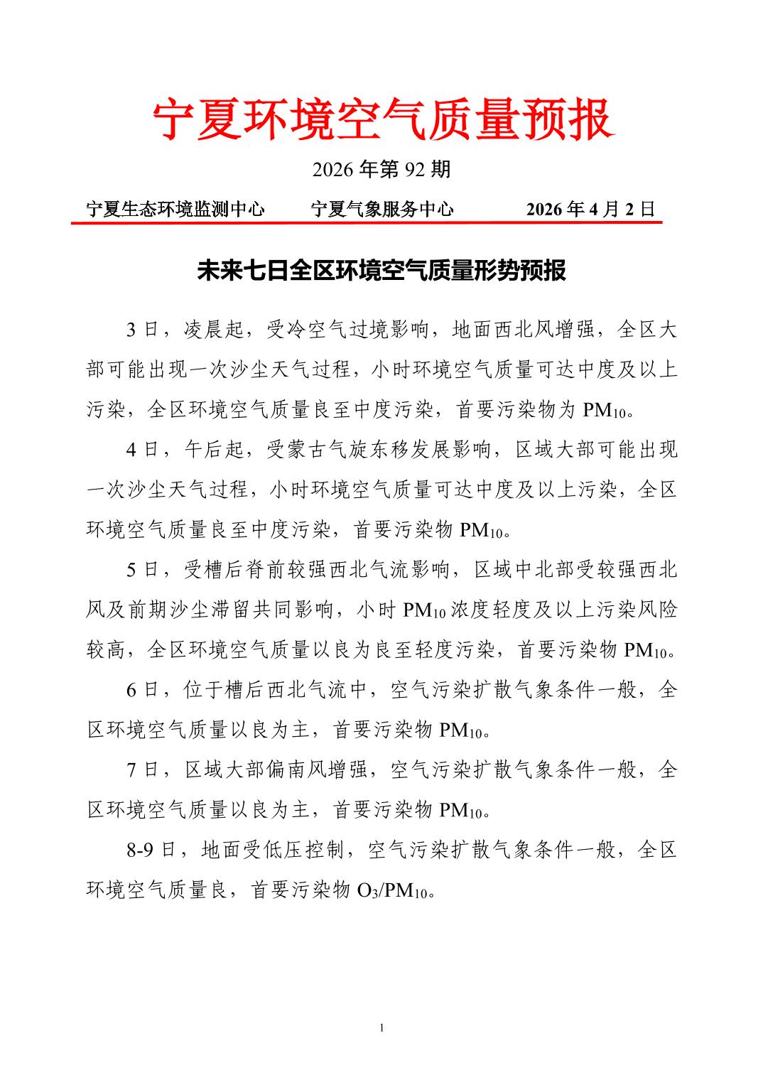 2026年4月2日宁夏环境空气质量预报信息