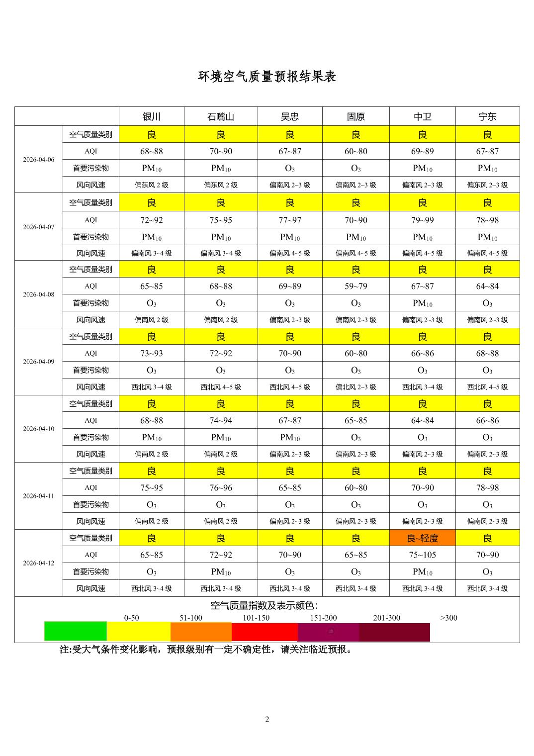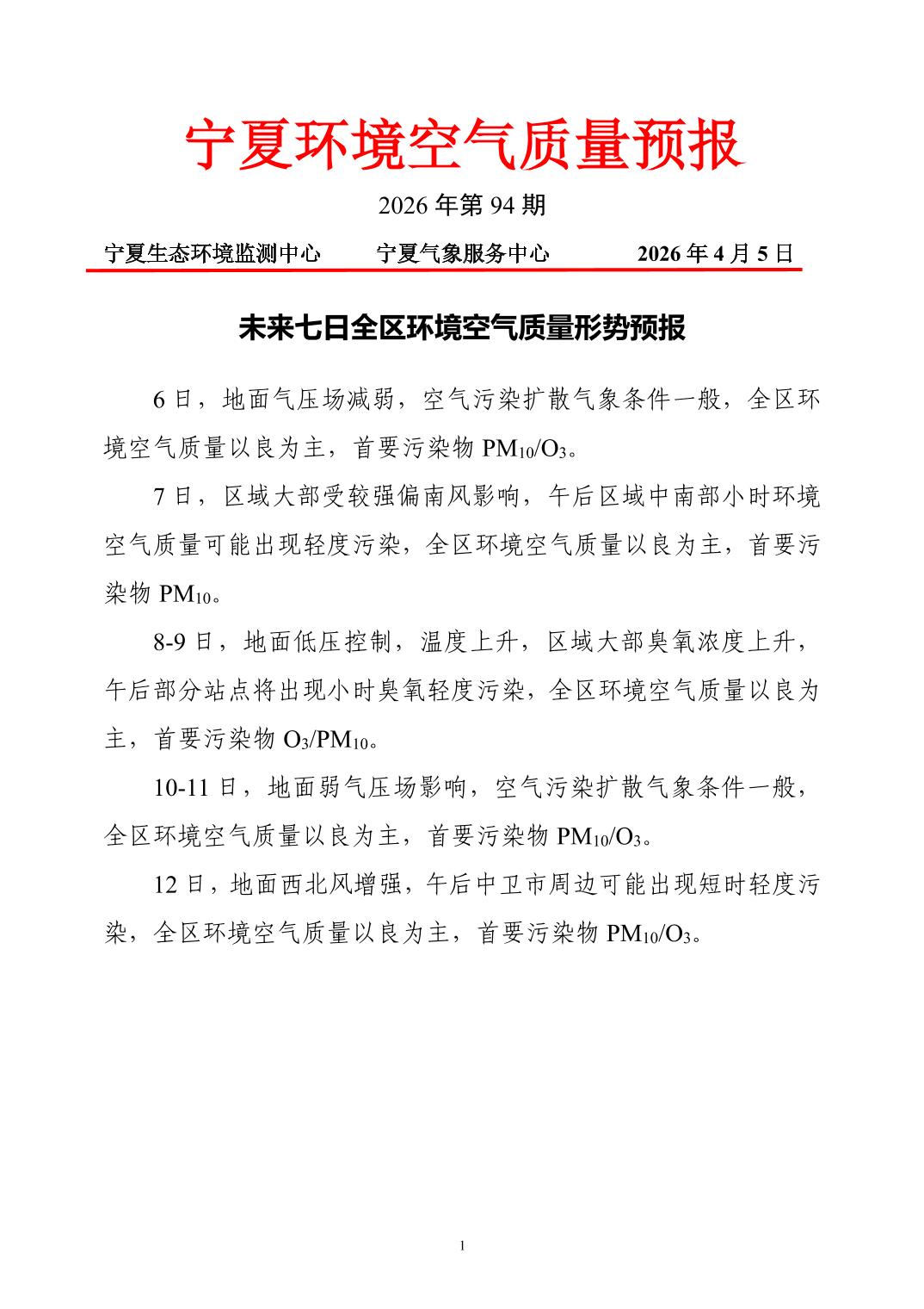 2026年4月5日宁夏环境空气质量预报信息