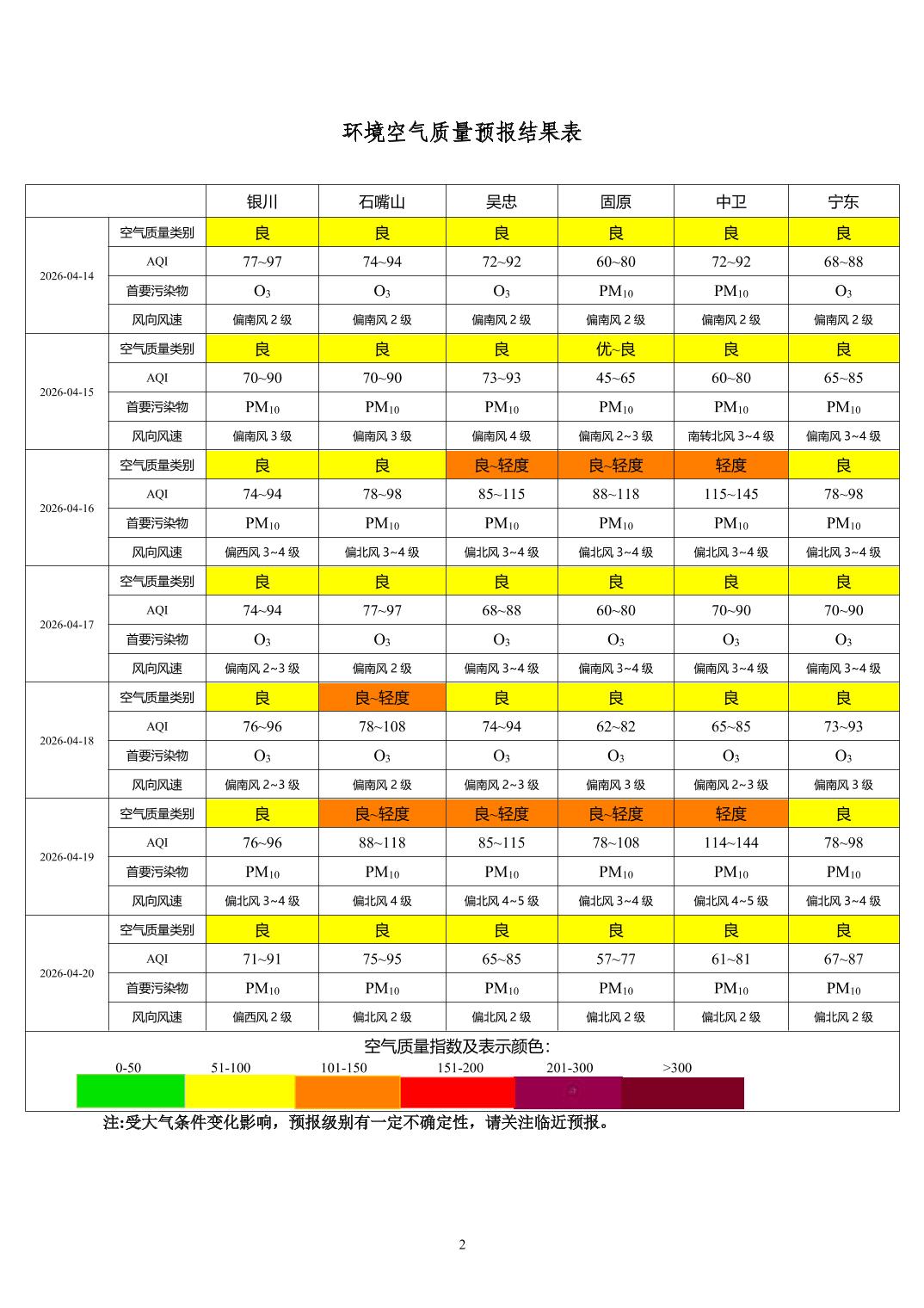 > 环境空气质量预报
