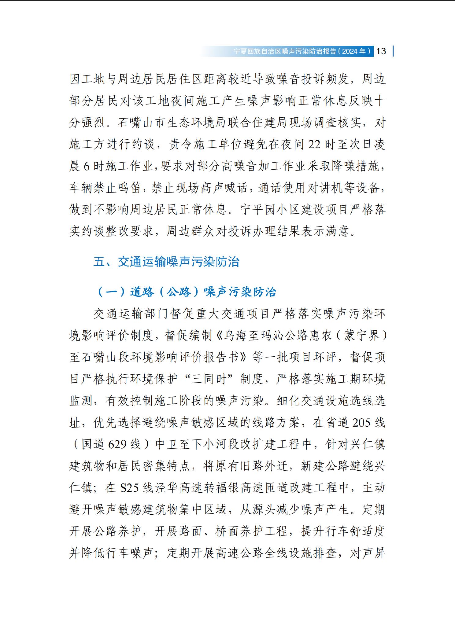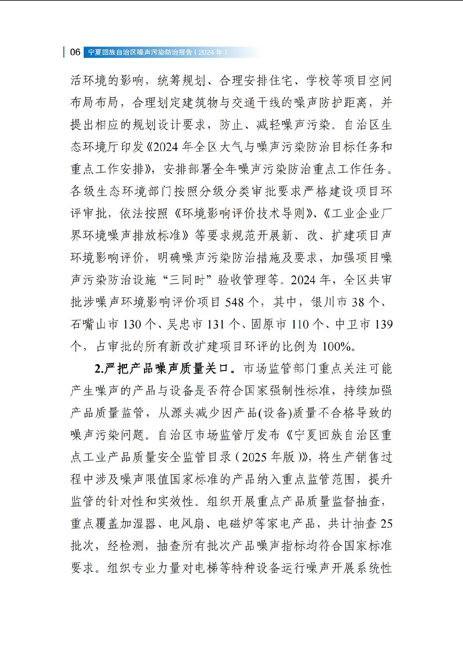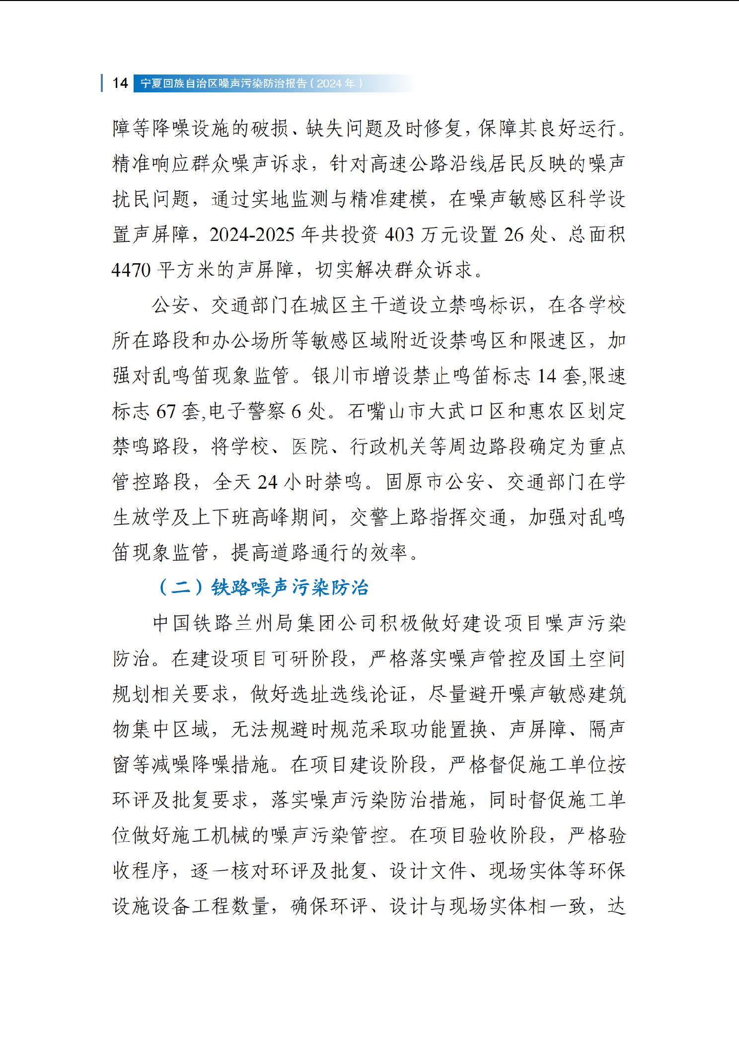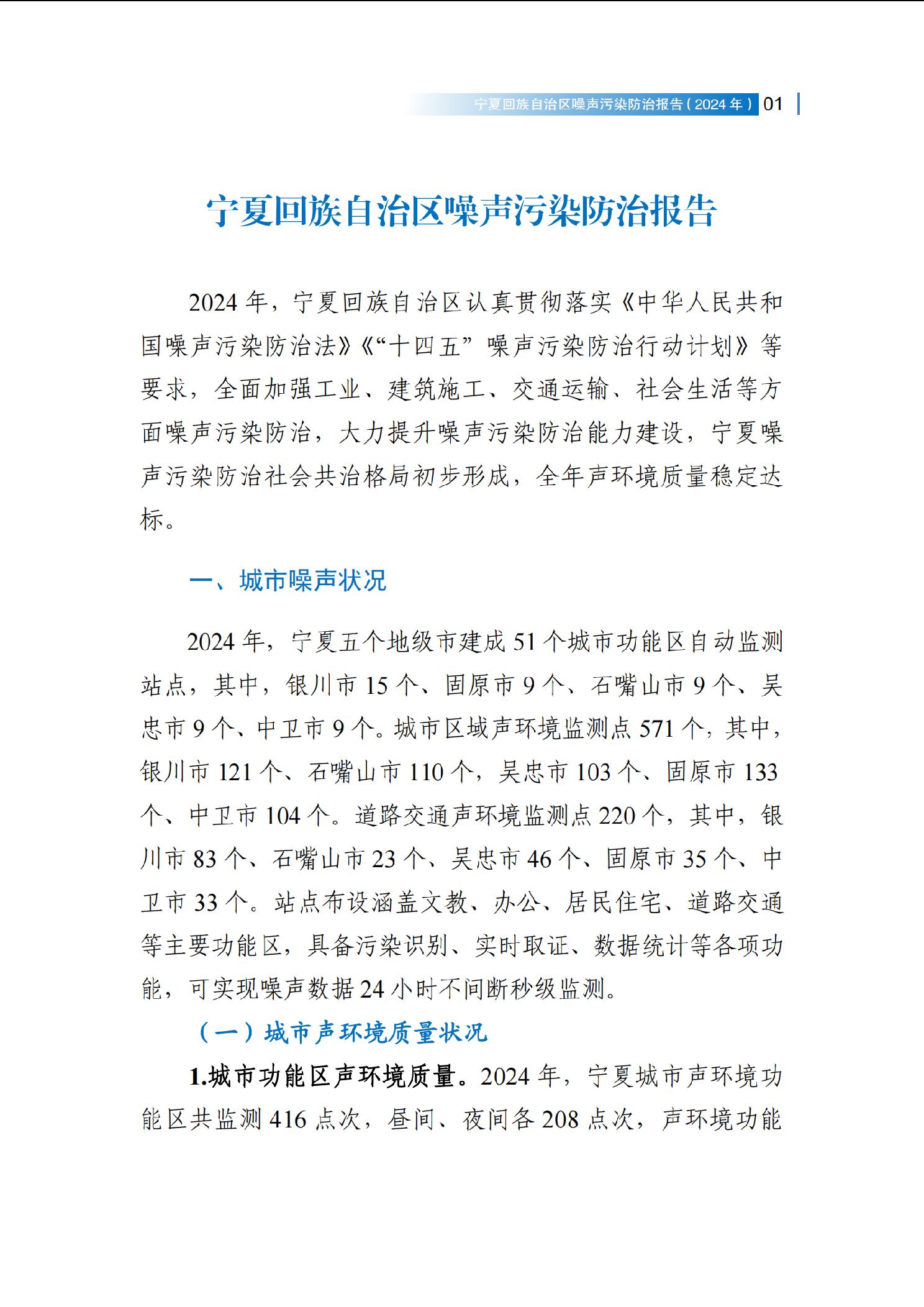 2024年宁夏回族自治区噪声污染防治报告