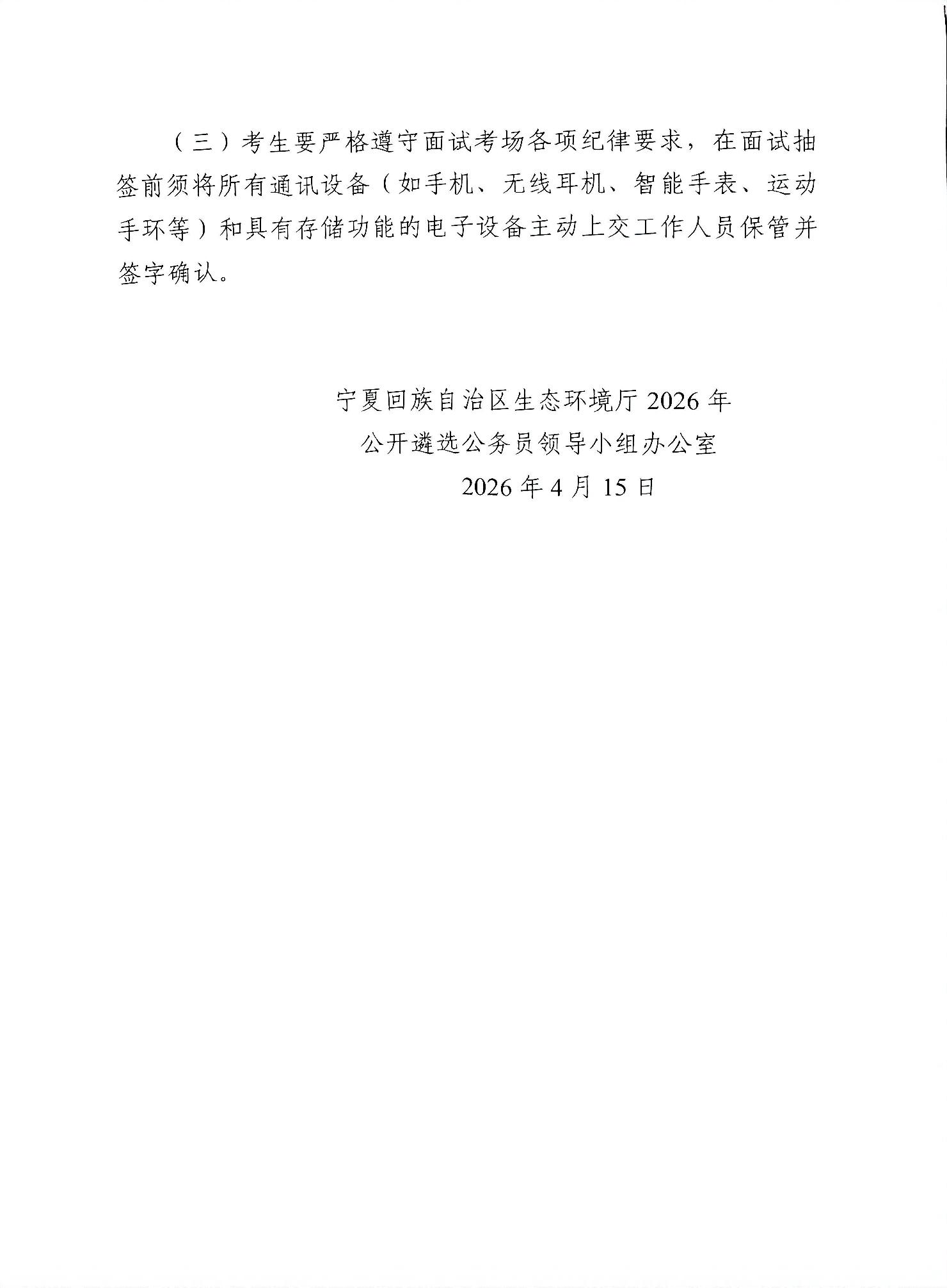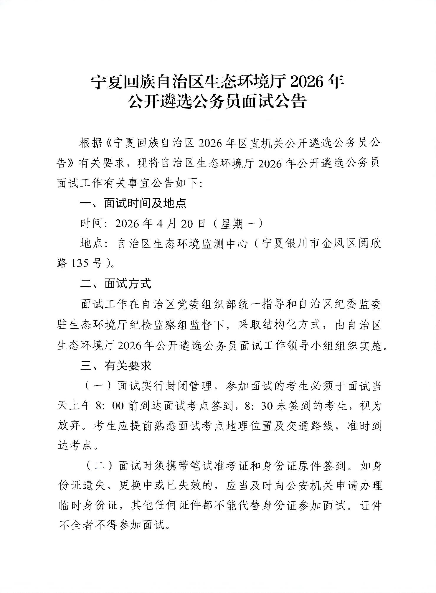 宁夏回族自治区生态环境厅2026年公开遴选公务员面试公告