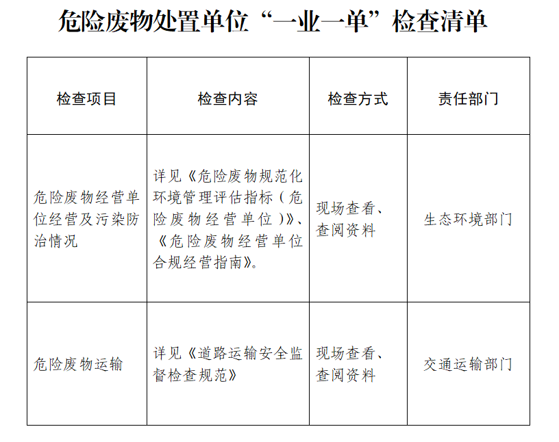 主要是对危险废物处置单位从事危险废物经营活动以及执行相关制度情况的行政检查,具体包括: