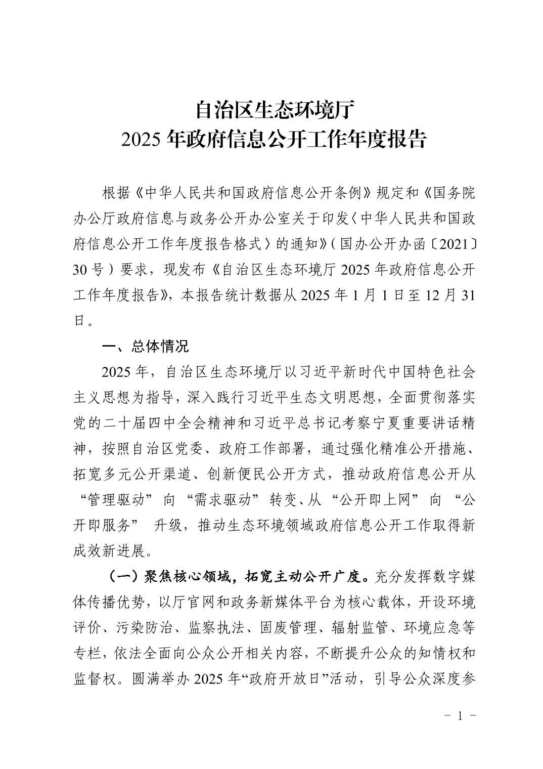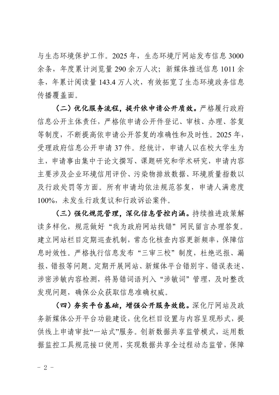 自治区生态环境厅2025年政府信息公开工作年度报告
