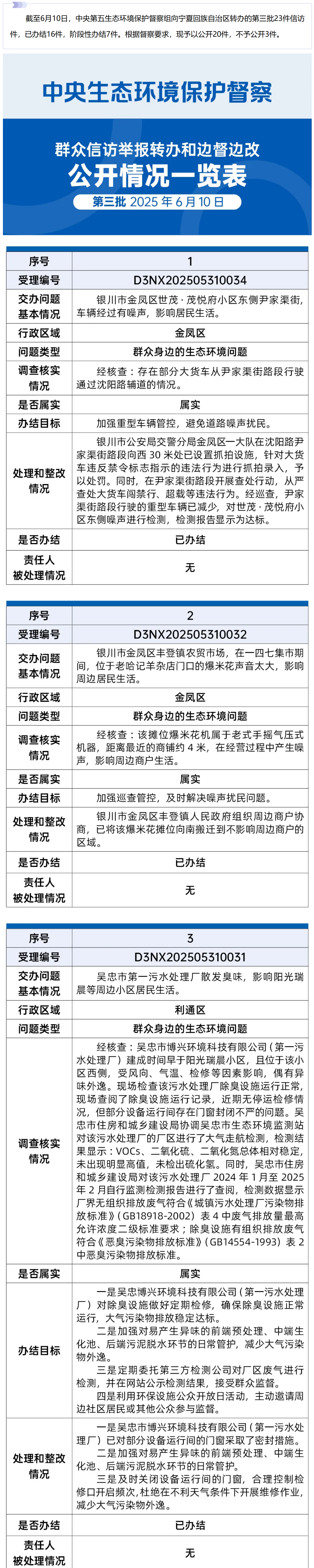 中央生态环境保护督察群众信访举报转办和边督边改公开情况一览表(第三批)