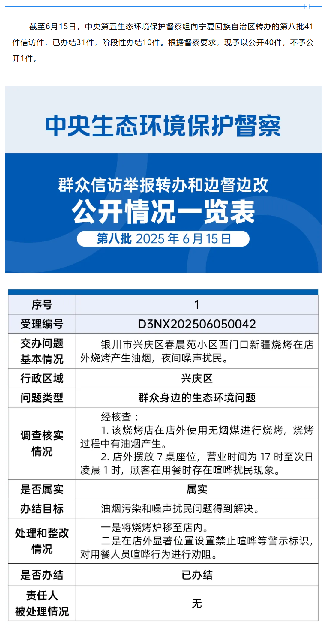 【生态环境保护督察】中央生态环境保护督察群众信访举报转办和边督边改公开情况一览表(第八批)