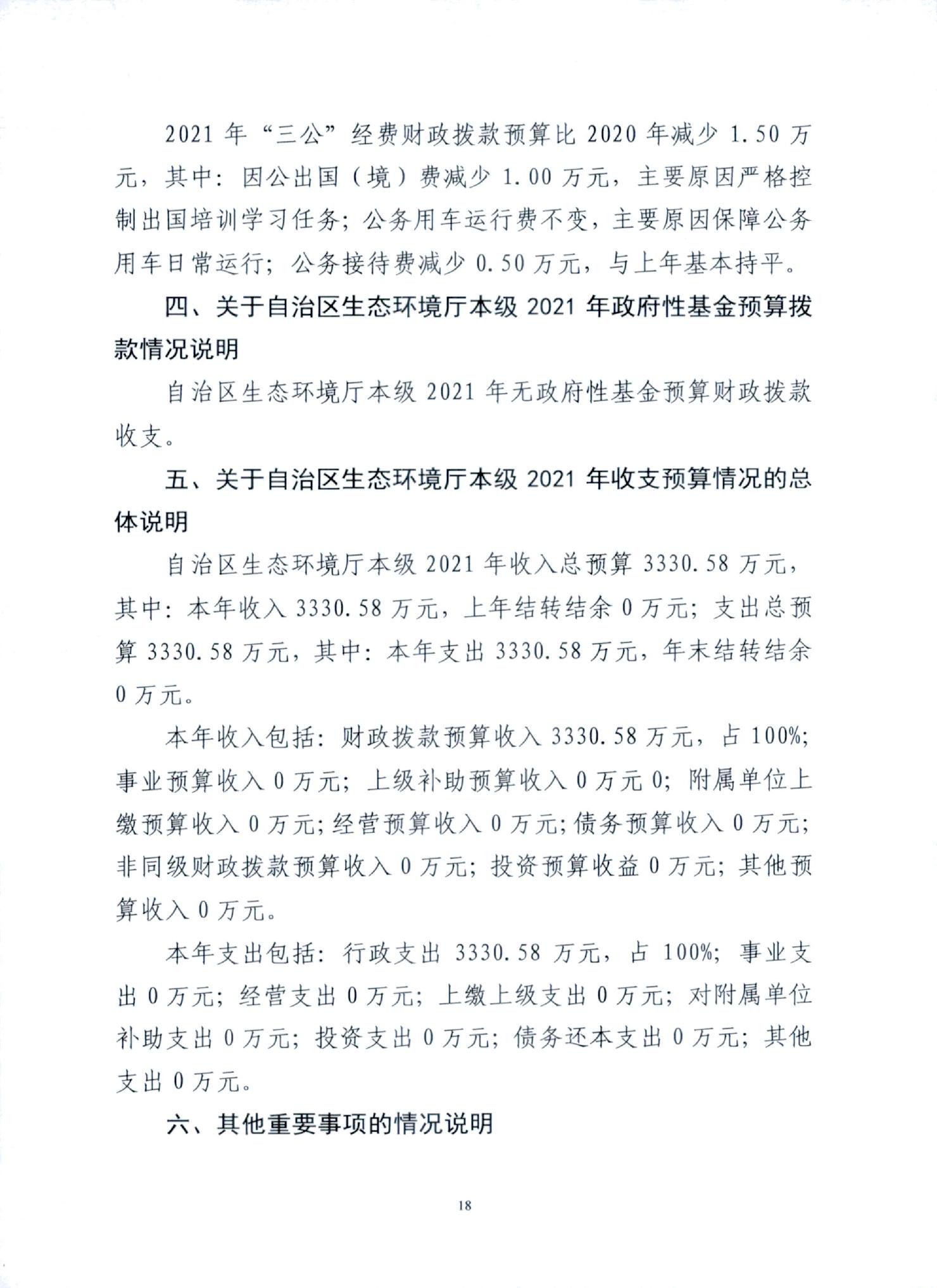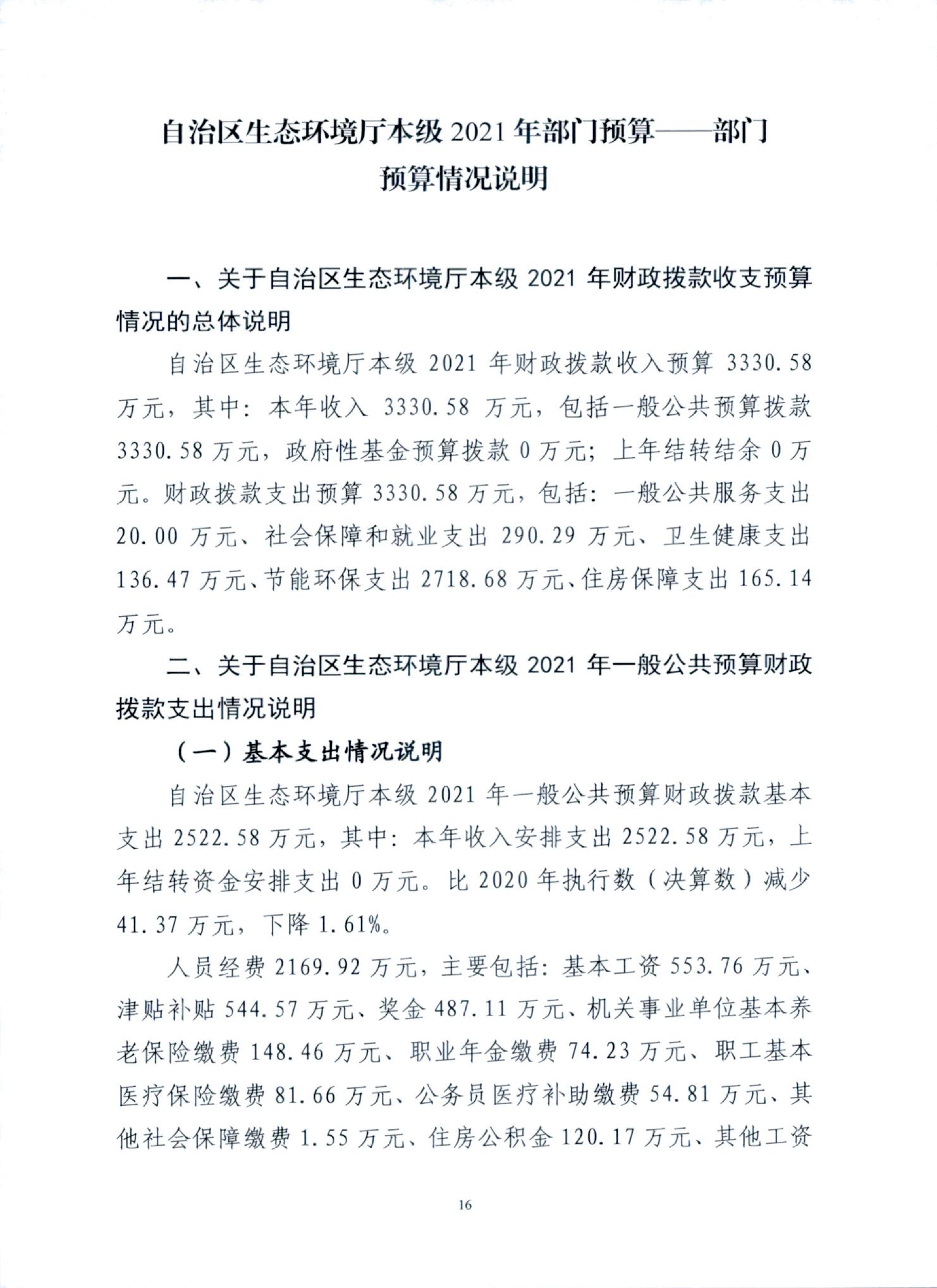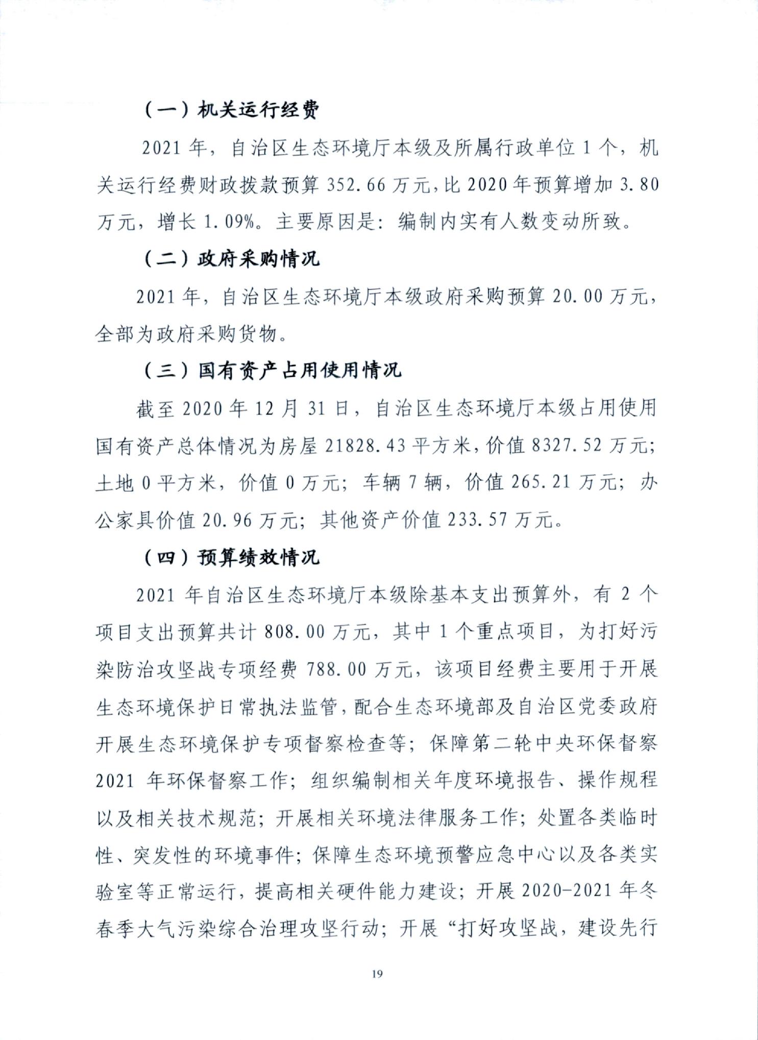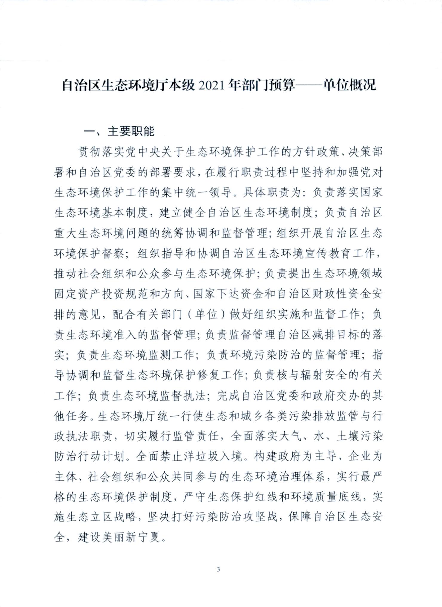 宁夏回族自治区生态环境厅本级2021年部门预算