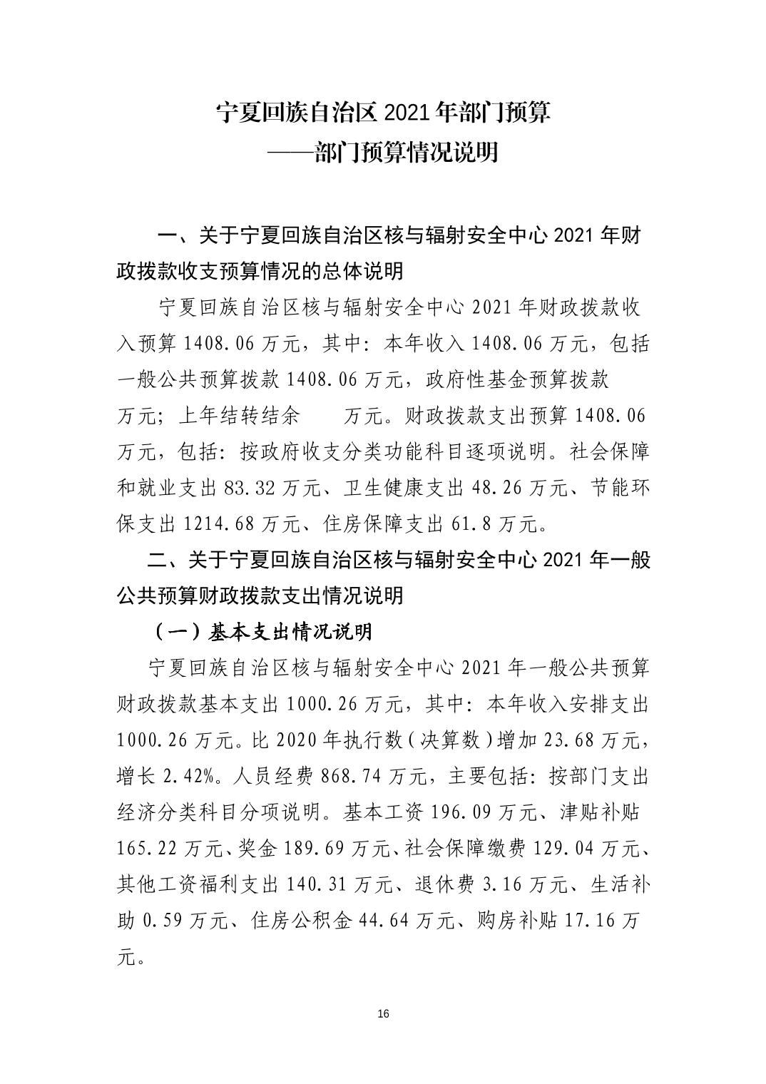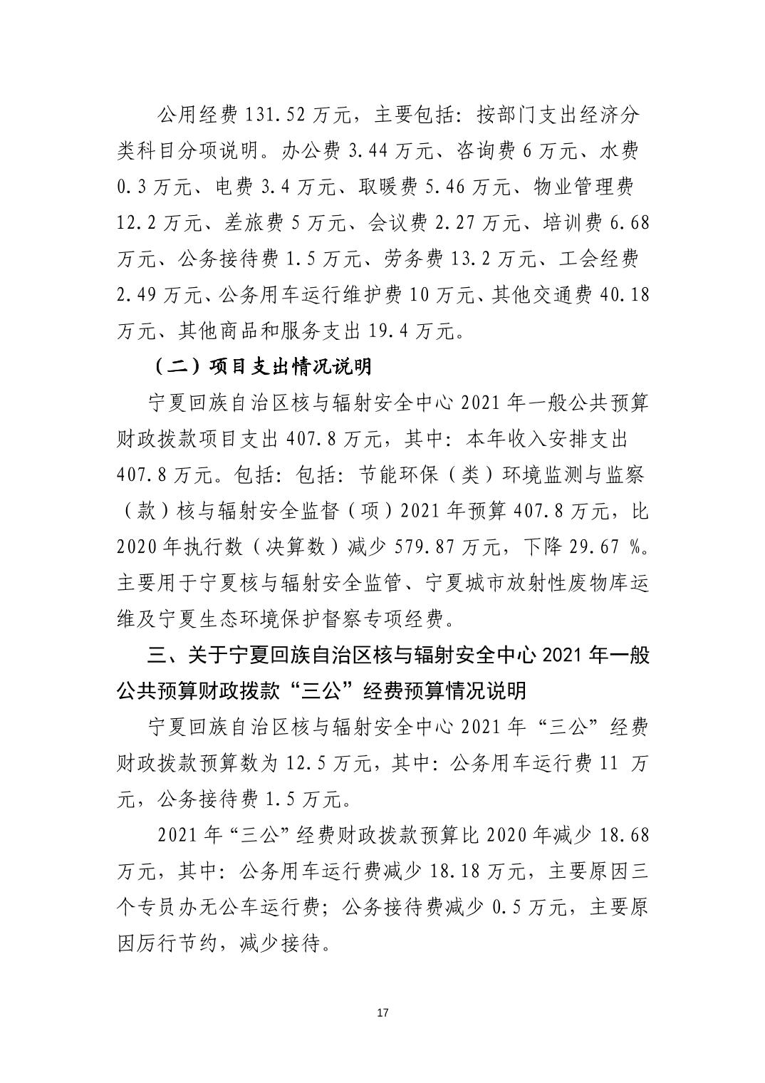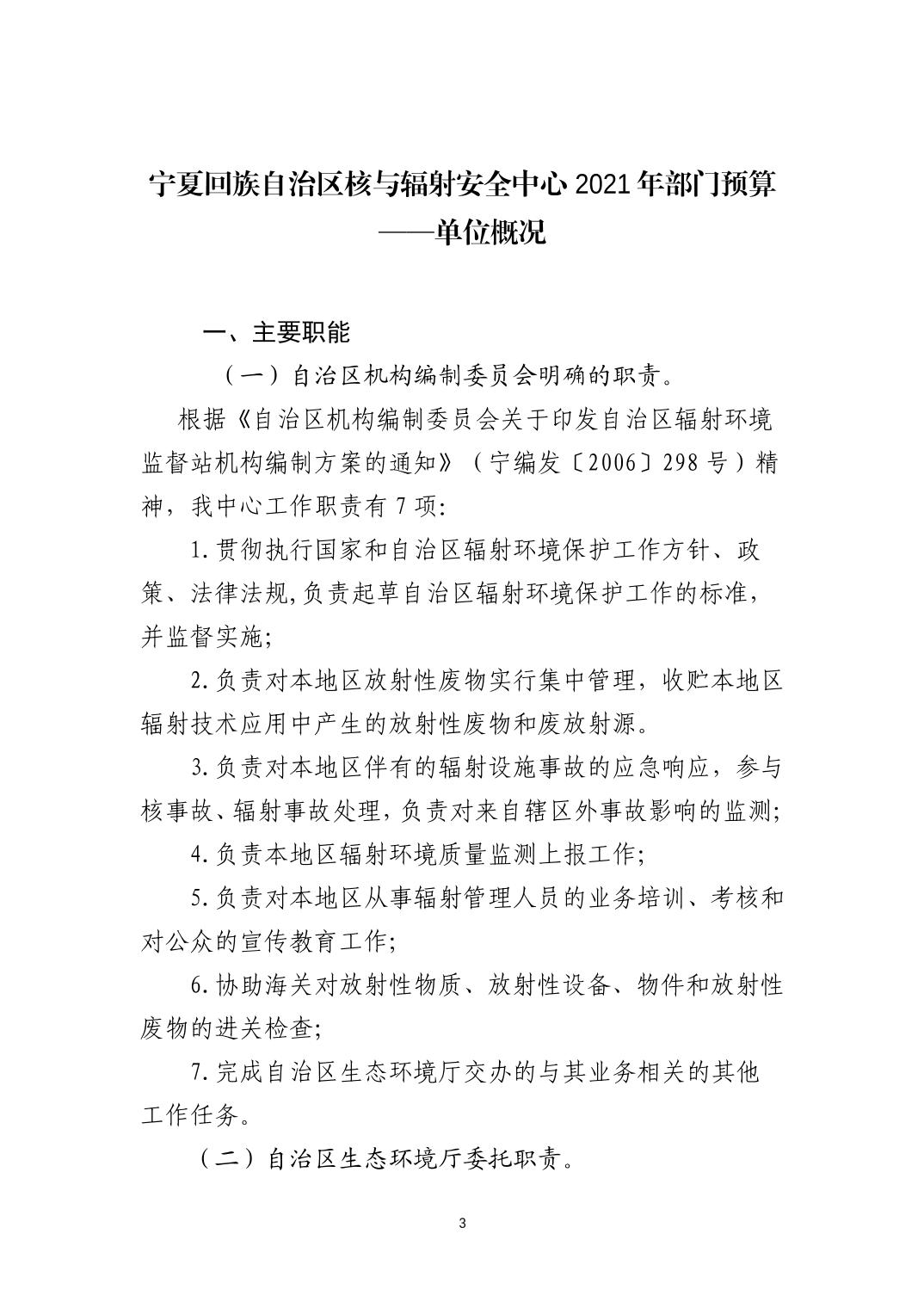 宁夏回族自治区核与辐射安全中心2021年部门预算
