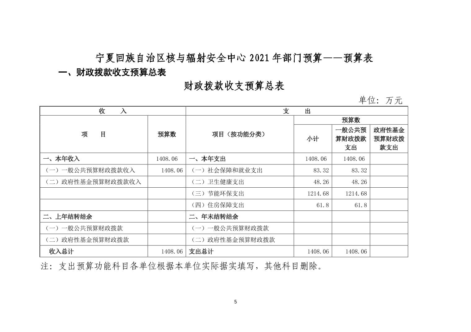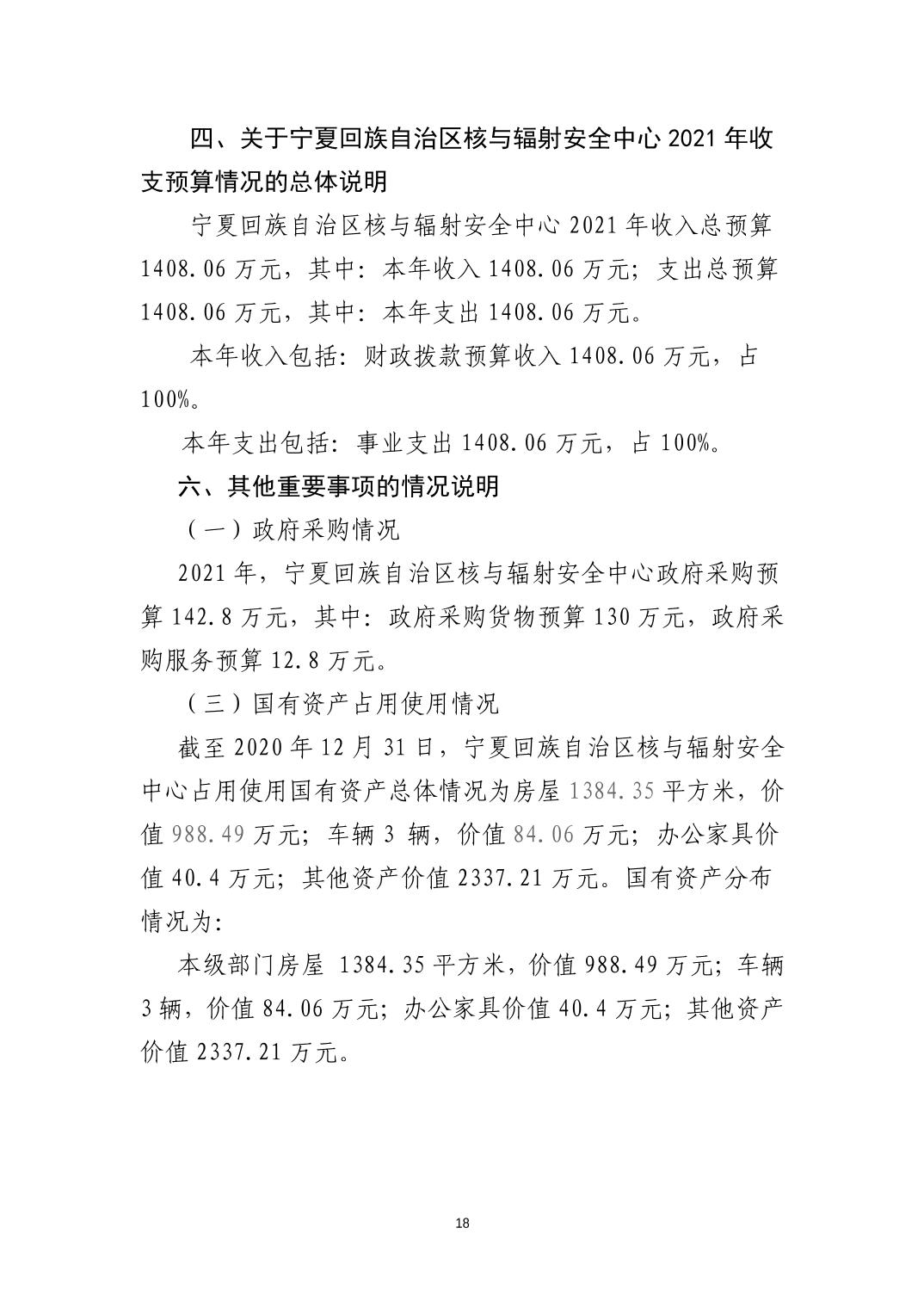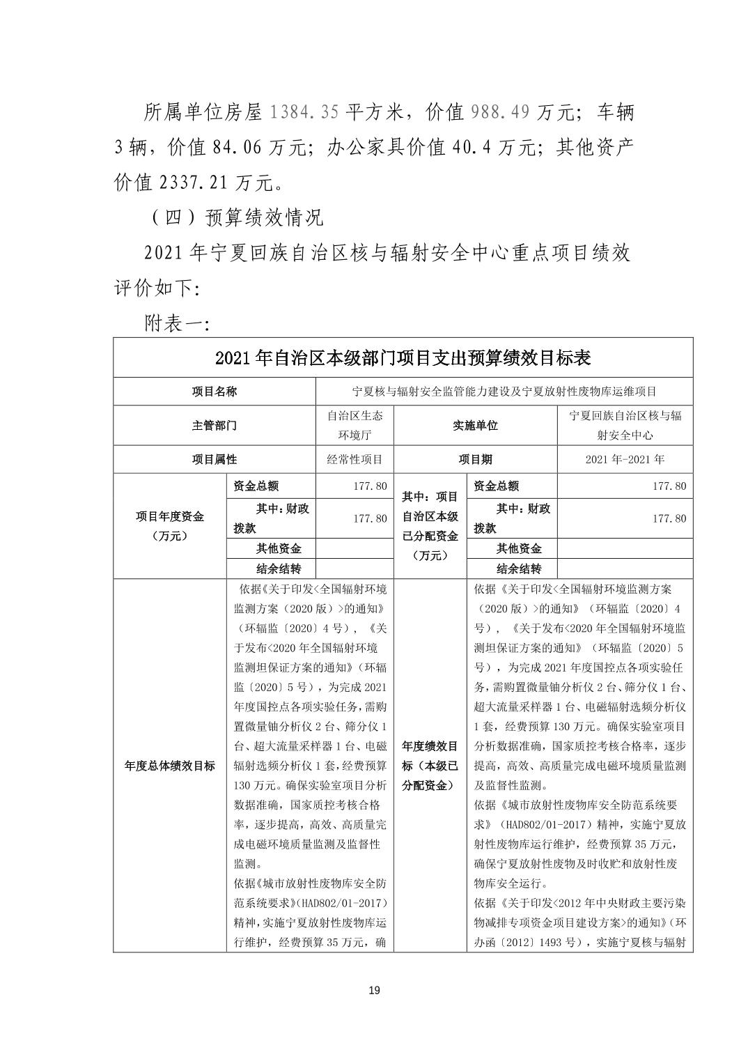 宁夏回族自治区核与辐射安全中心2021年部门预算
