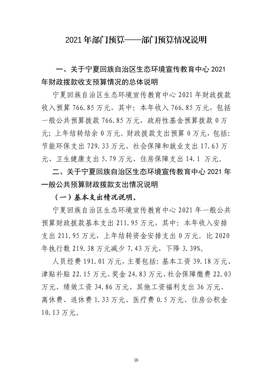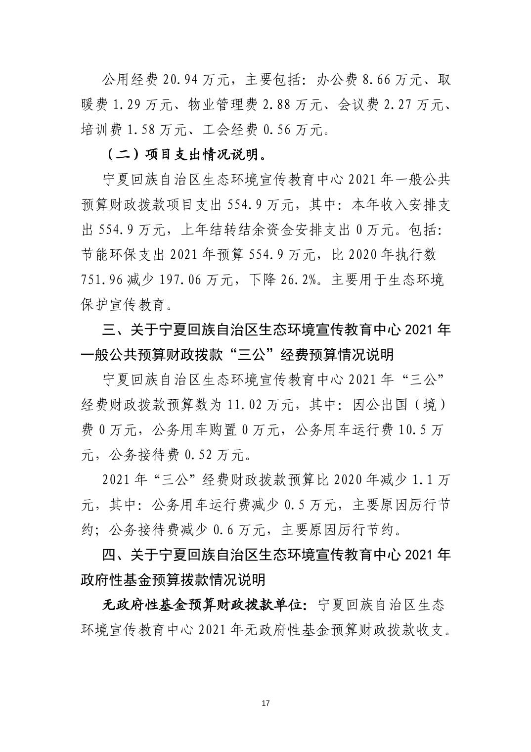宁夏回族自治区生态环境宣传教育中心2021年部门预算