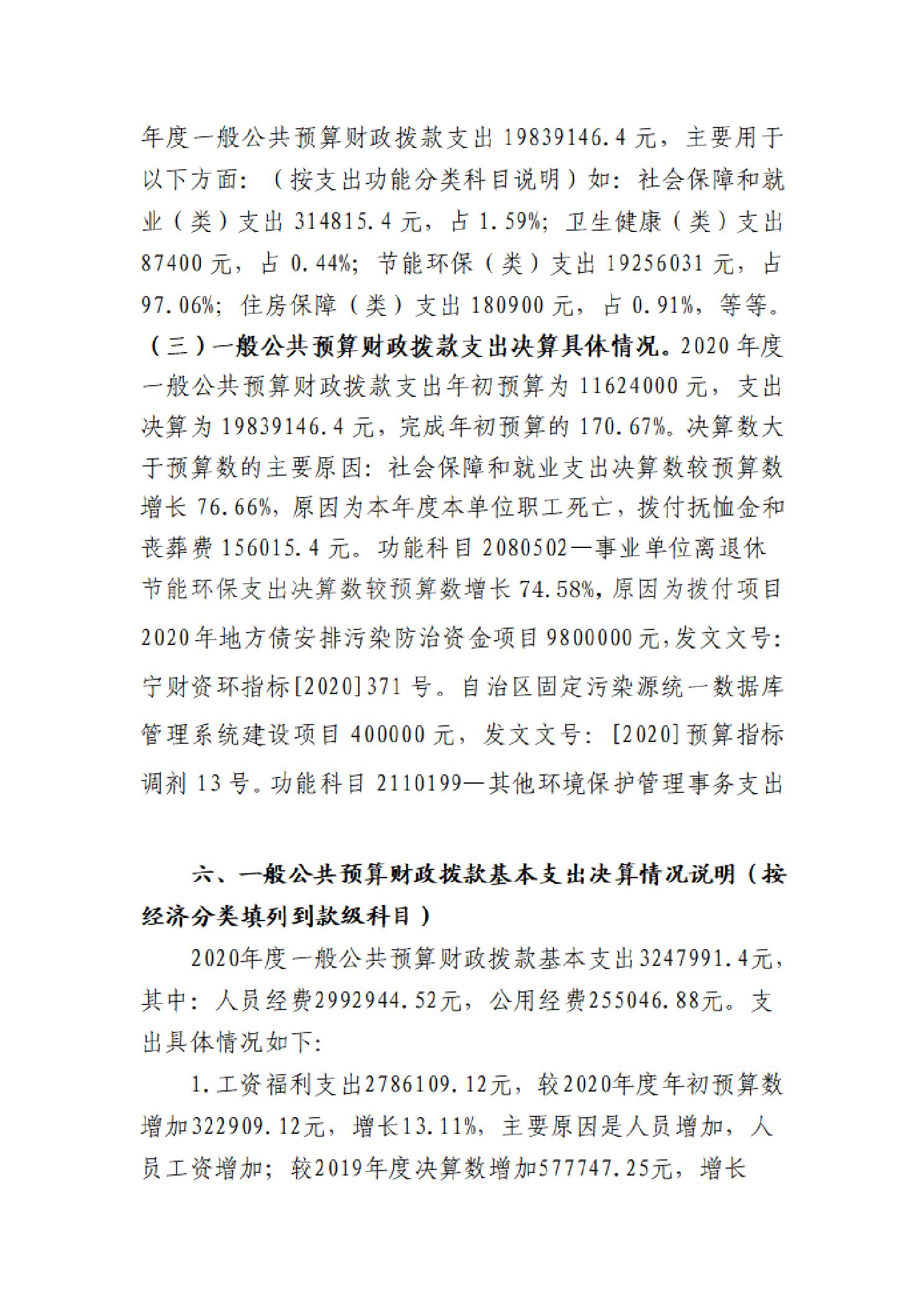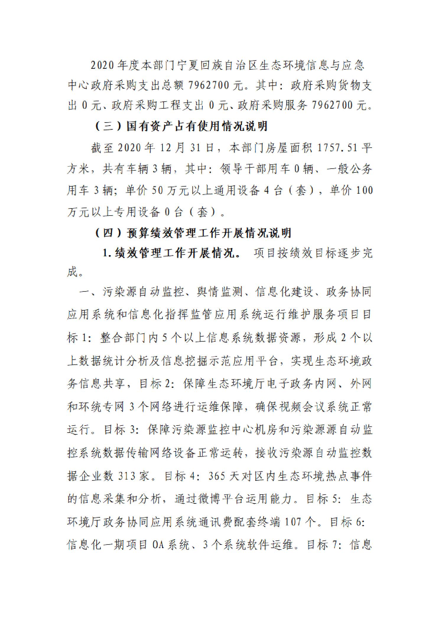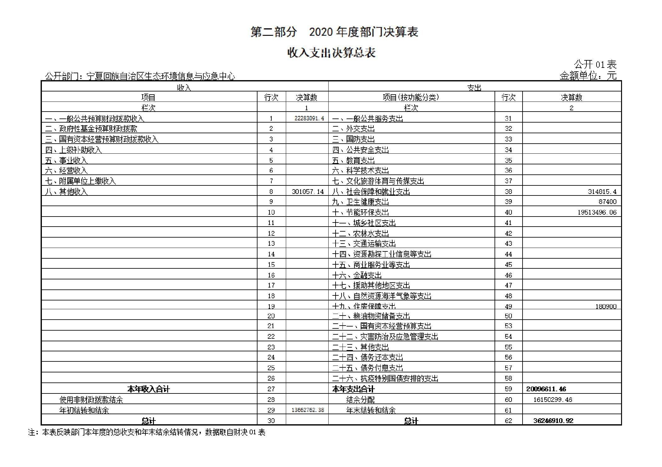 宁夏回族自治区生态环境信息与应急中心2020年度部门决算公开