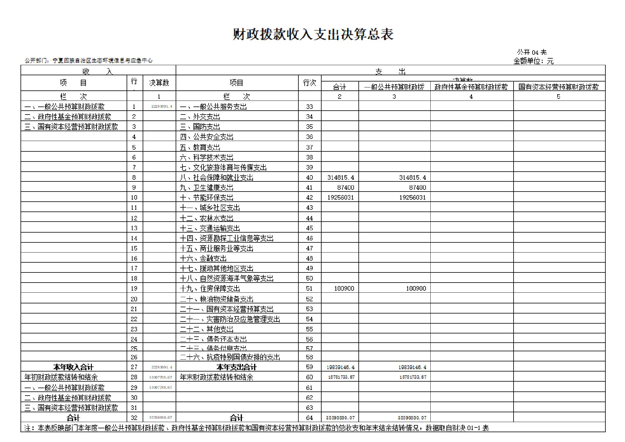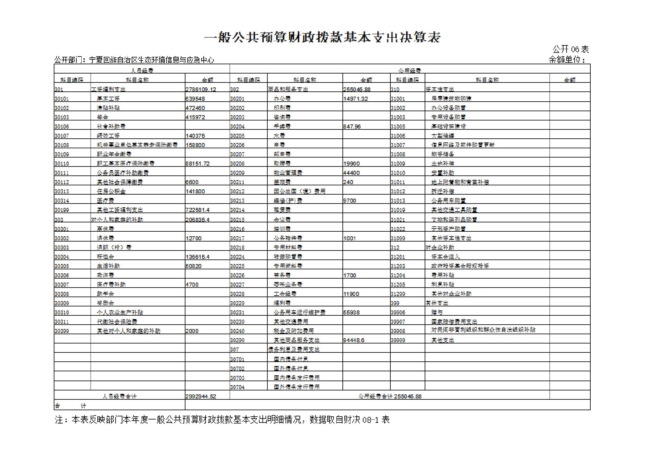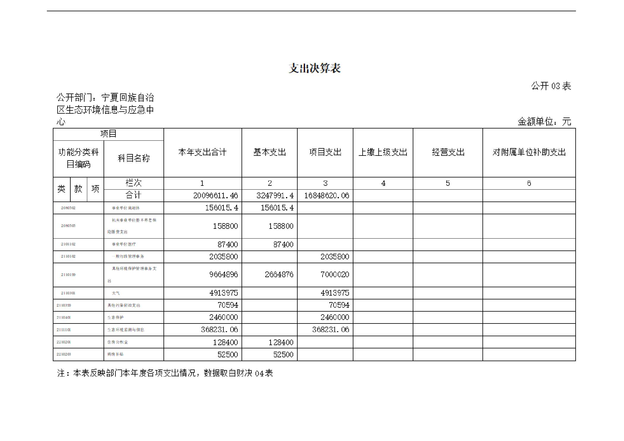 宁夏回族自治区生态环境信息与应急中心2020年度部门决算公开