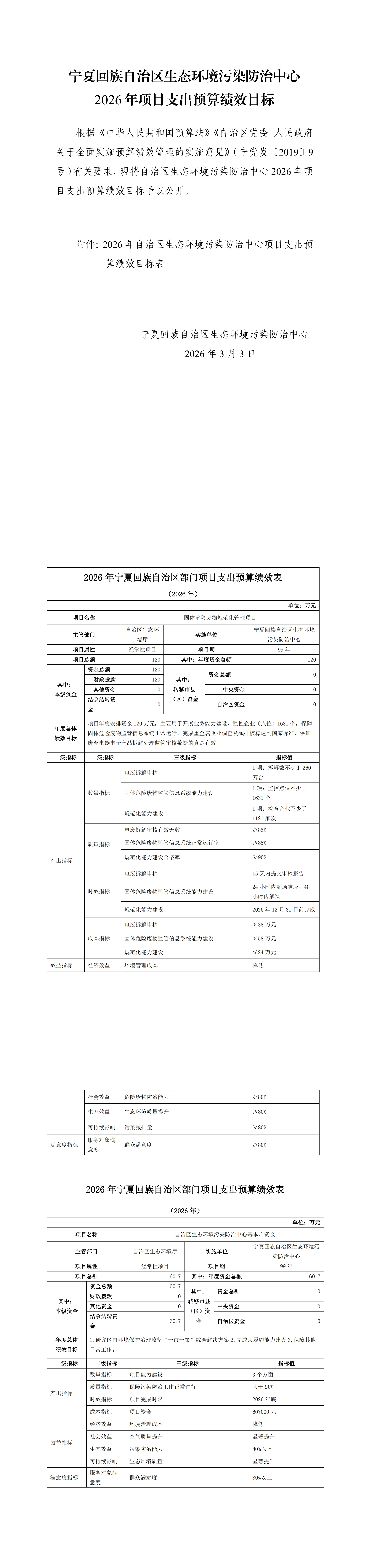 宁夏回族自治区生态环境污染防治中心2026年项目支出预算绩效目标