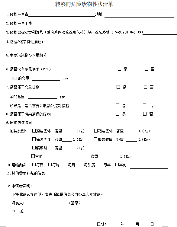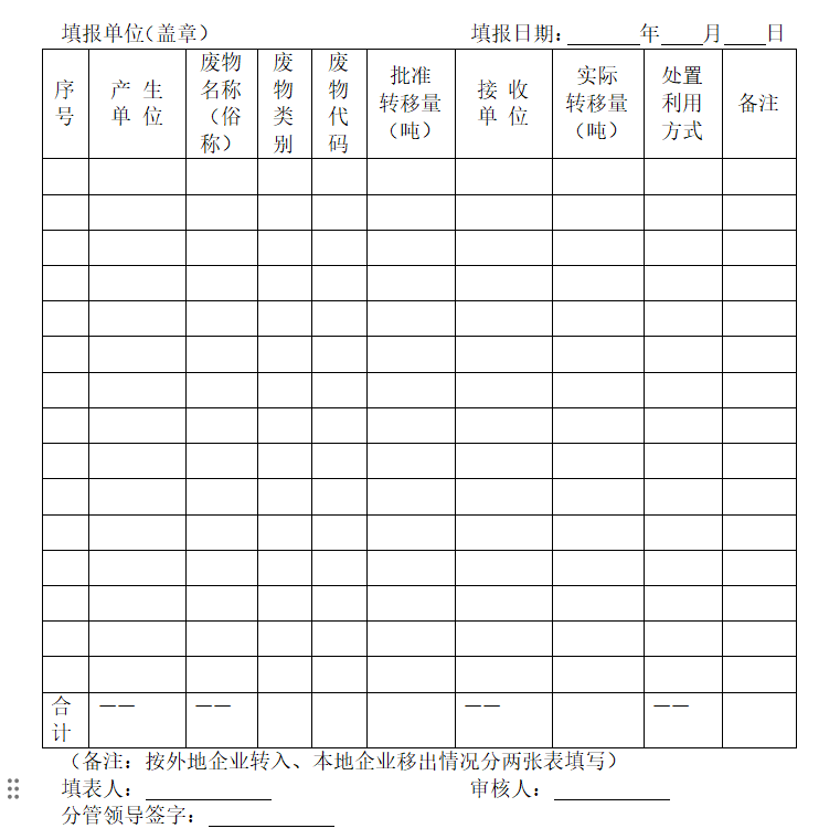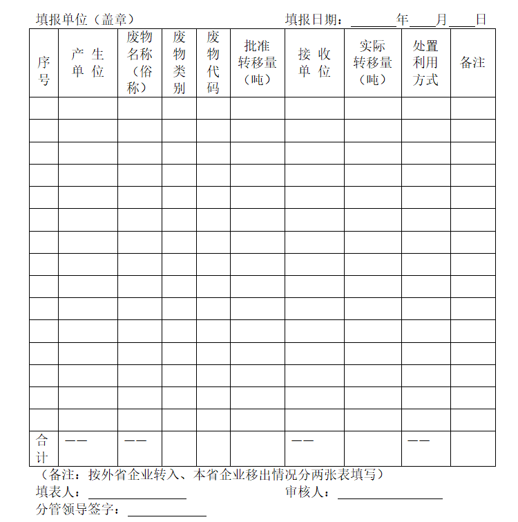 6 | 申报 资料 | 处置利用单位危险废物跨省转移申请报告(在附件中按月份写明收集、生产经营真实情况) | ||||||||||||||