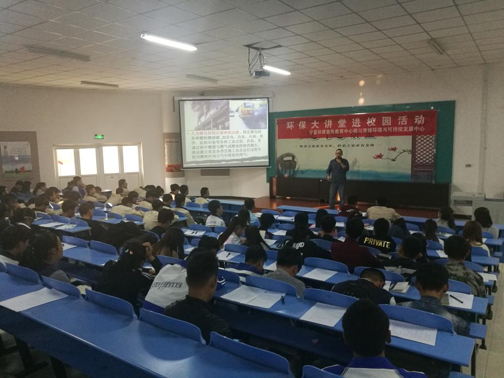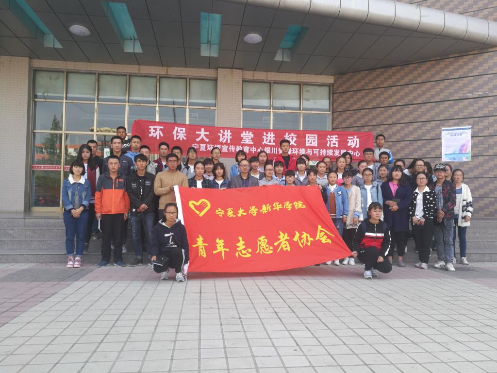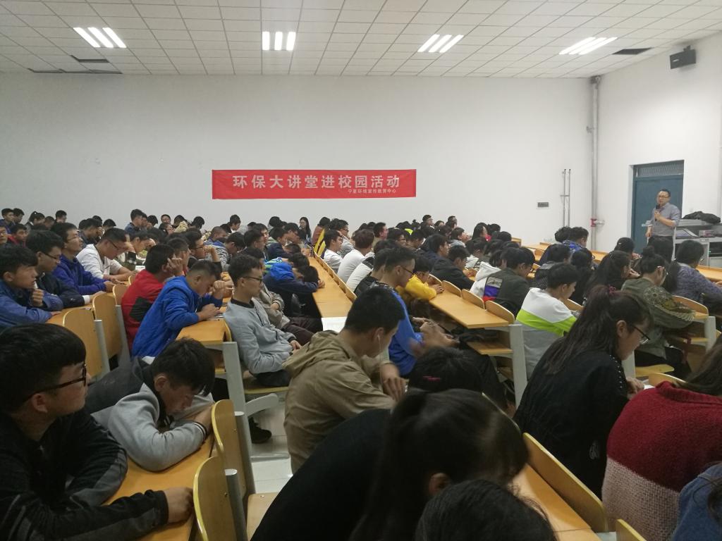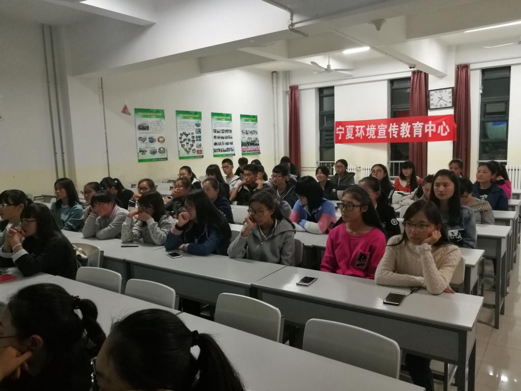 聘请宁夏大学资源环境学院专家教授组成讲师团,深入宁夏高校、中小学校和部分社区进行环保法律法规、环保知识宣讲活动。采用现场宣讲、发放宣传资料和环保用品、开展有奖问答、悬挂横幅、展示自制宣传板等多种形式,向30所学校师生宣传新《环境保护法》、《大气污染防治法》等与人们息息相关的环保法律法规。在20家社区举办了《环境与健康知识讲座》等活动。此外,环保志愿者还通过开展游戏互动、小手拉大手等办法在中小学校开展了宣传活动,吸引了更多群众参与。