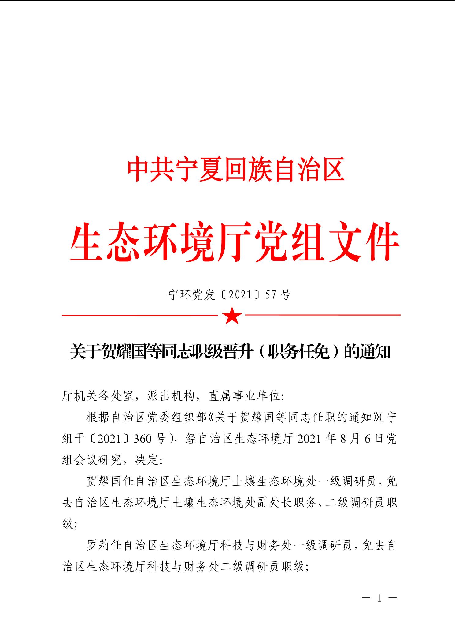 关于贺耀国等同志职级晋升(职务任免)的通知