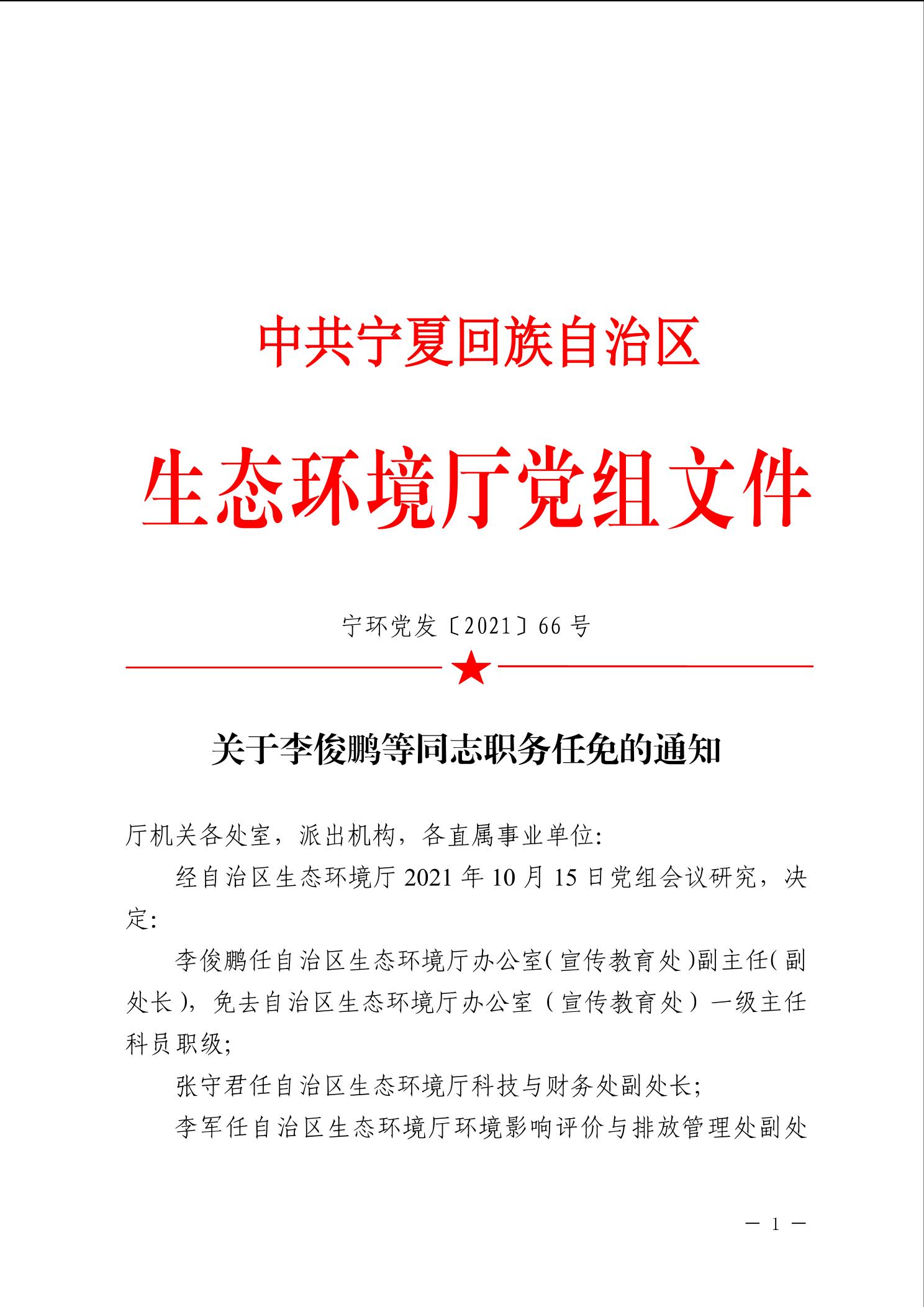 关于李俊鹏等同志职务任免的通知