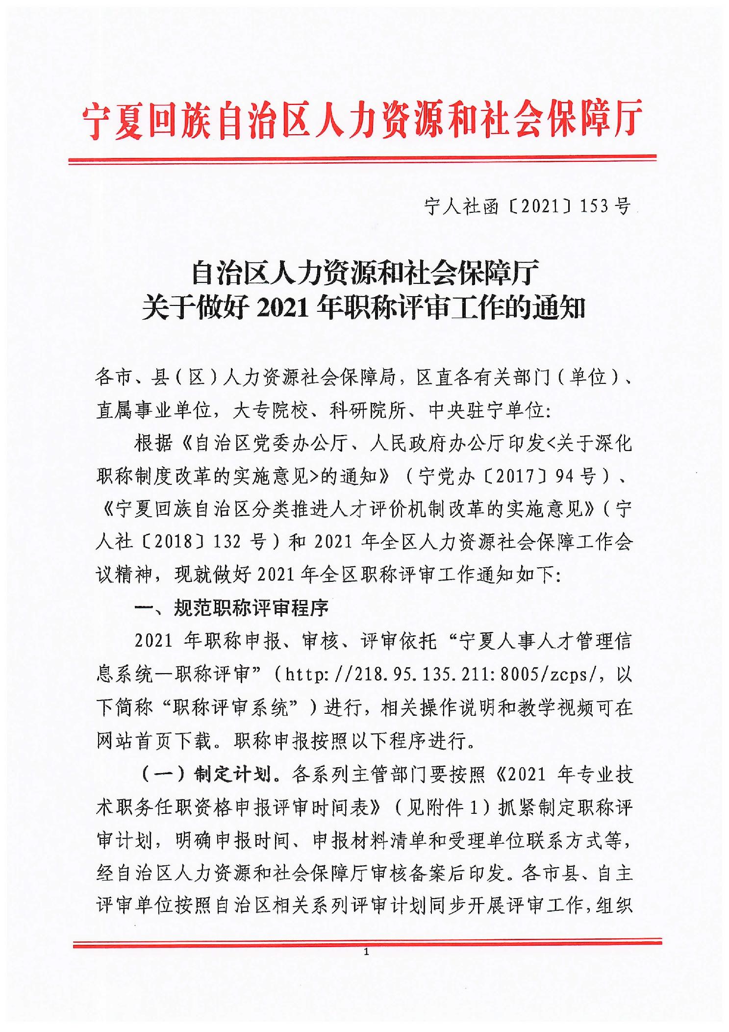 自治区人力资源和社会保障厅关于做好2021年职称评审工作通知