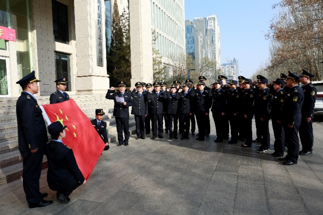 “我宣誓:听党指挥、政治坚定;永葆初心、牢记使命;严格执法、服务人民;纪律严明、勇担重任!……”宁夏生态环境保护综合行政执法队伍面对国旗庄严宣誓,整装再出发。