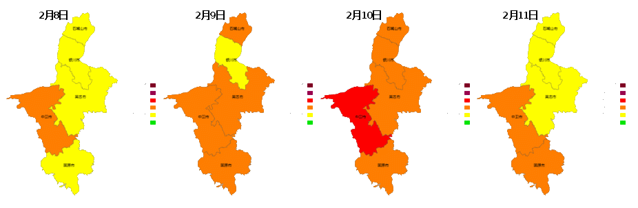 图 2026年2月8日-11日宁夏环境空气质量预报形势分布图